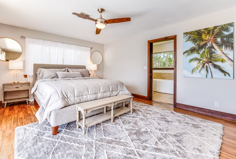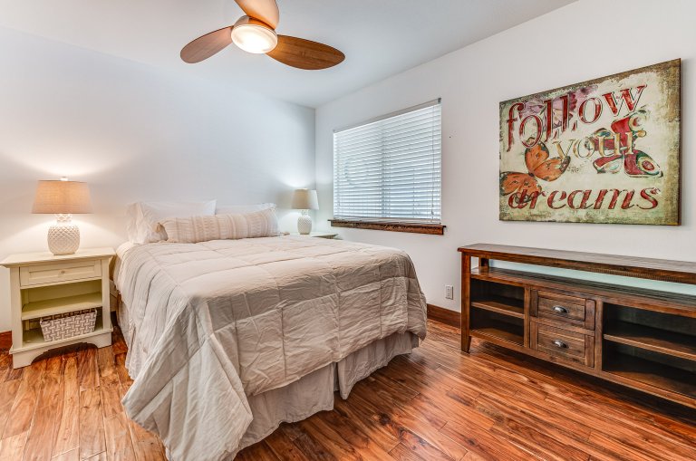 Bed: King Bed • En-Suite Bath with Bathtub • Ceiling Fan
