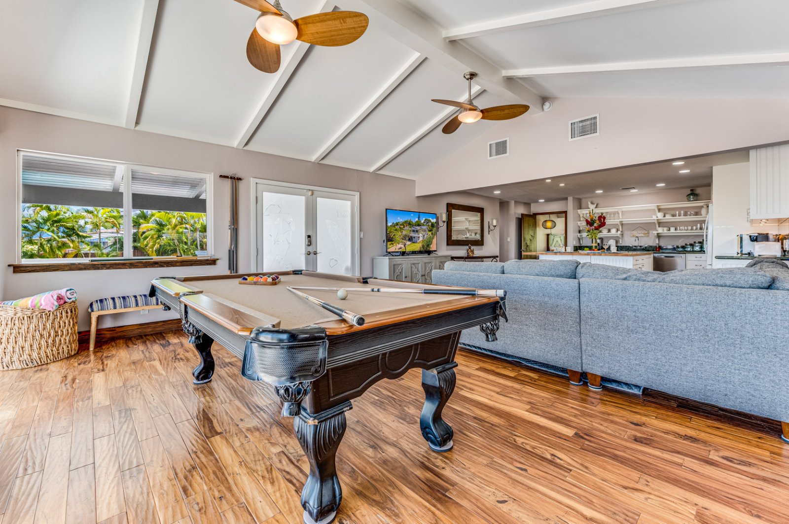 Sofa • Flat-Screen TV * • Pool Table • Ceiling Fan *