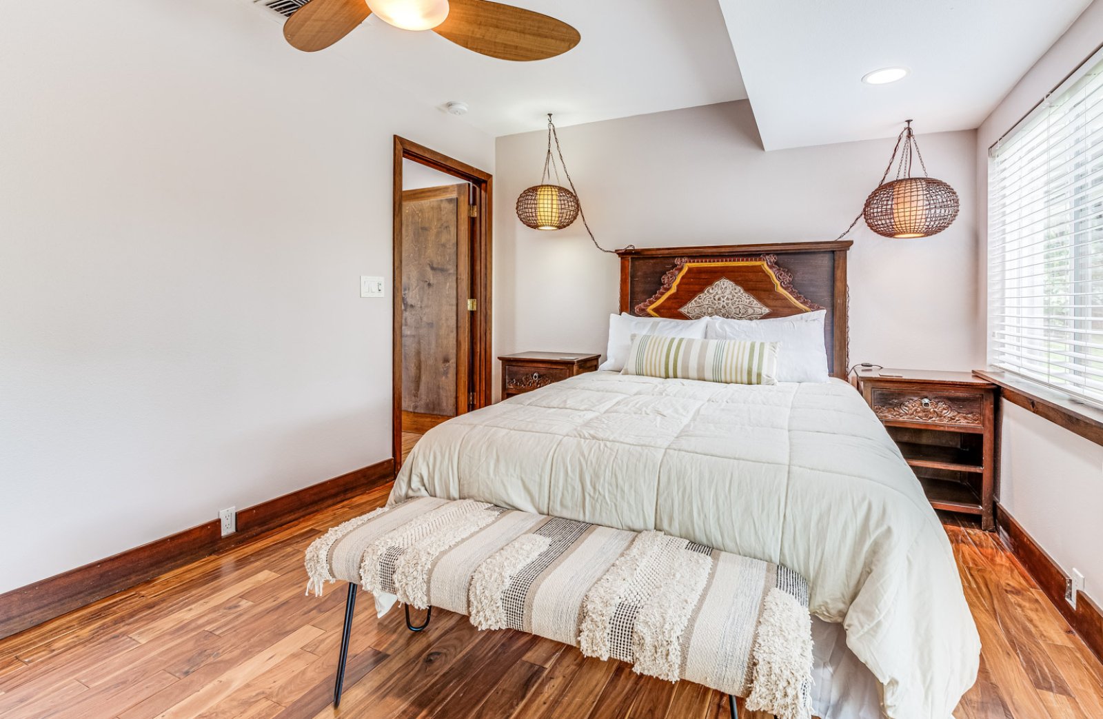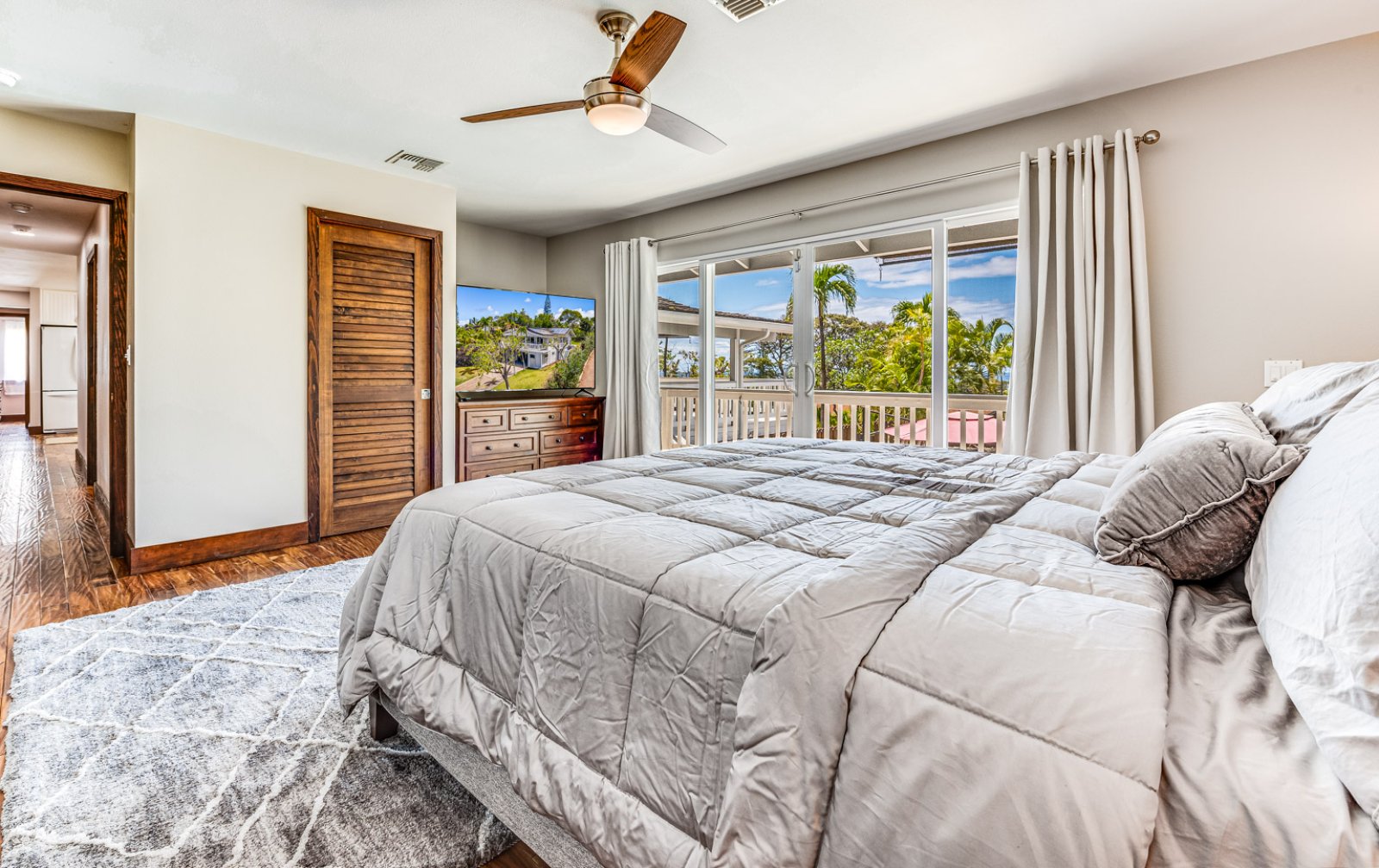 access to the outdoor balcony. In addition, a fourth bedroom features a queen-size