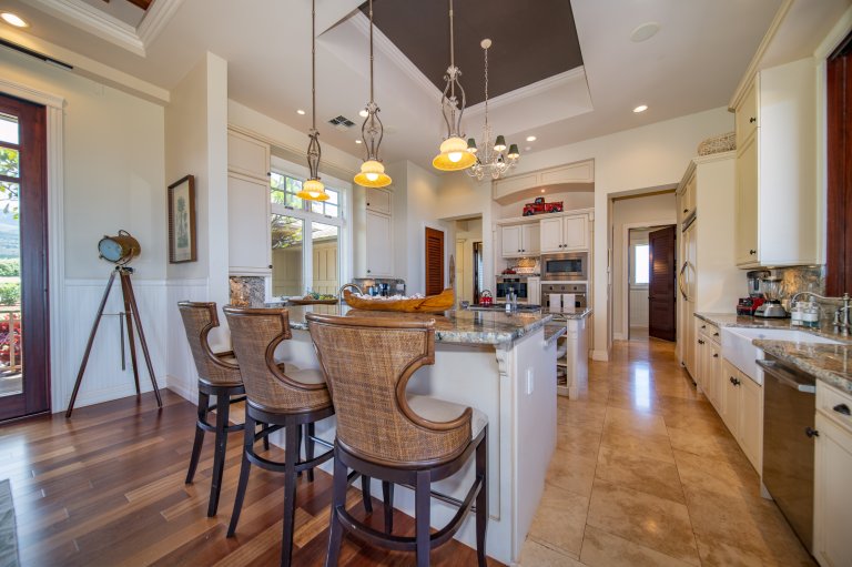 Situated in the exclusive and private Kaanapali Coffee Farms, you can experience a unique community in Hawaii where agricultural traditions and refined tropical living come together. With coffee trees planted on the hillside around the home, the landscape is wonderfully green. When in bloom, the smell of the coffee trees perfume the air with their delicate scent.