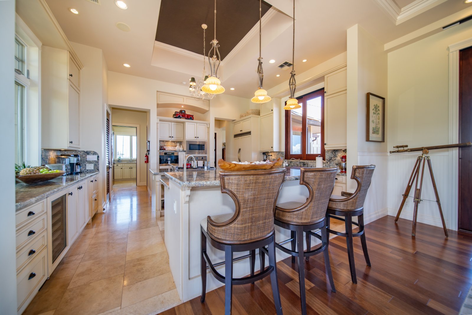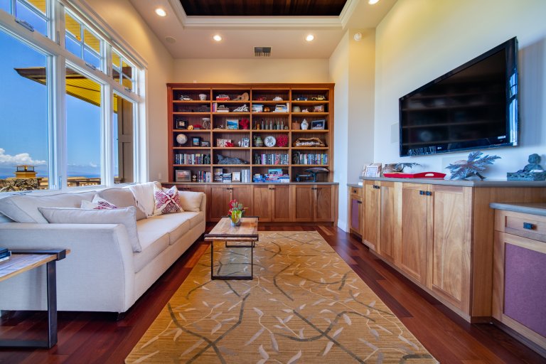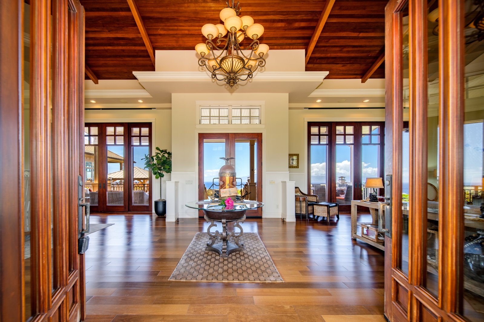 With approximately 3,600 square feet of indoor living space and 2,400 square feet of outdoor lanai space, there is plenty of room for relaxation. You can relax the day away in the infinity pool and Jacuzzi spa, and enjoy breathtaking views of the slopes of coffee trees, enchanting Hawaiian sunsets and the sparkling blue Pacific Ocean.