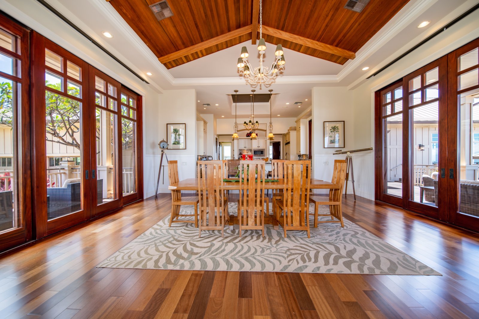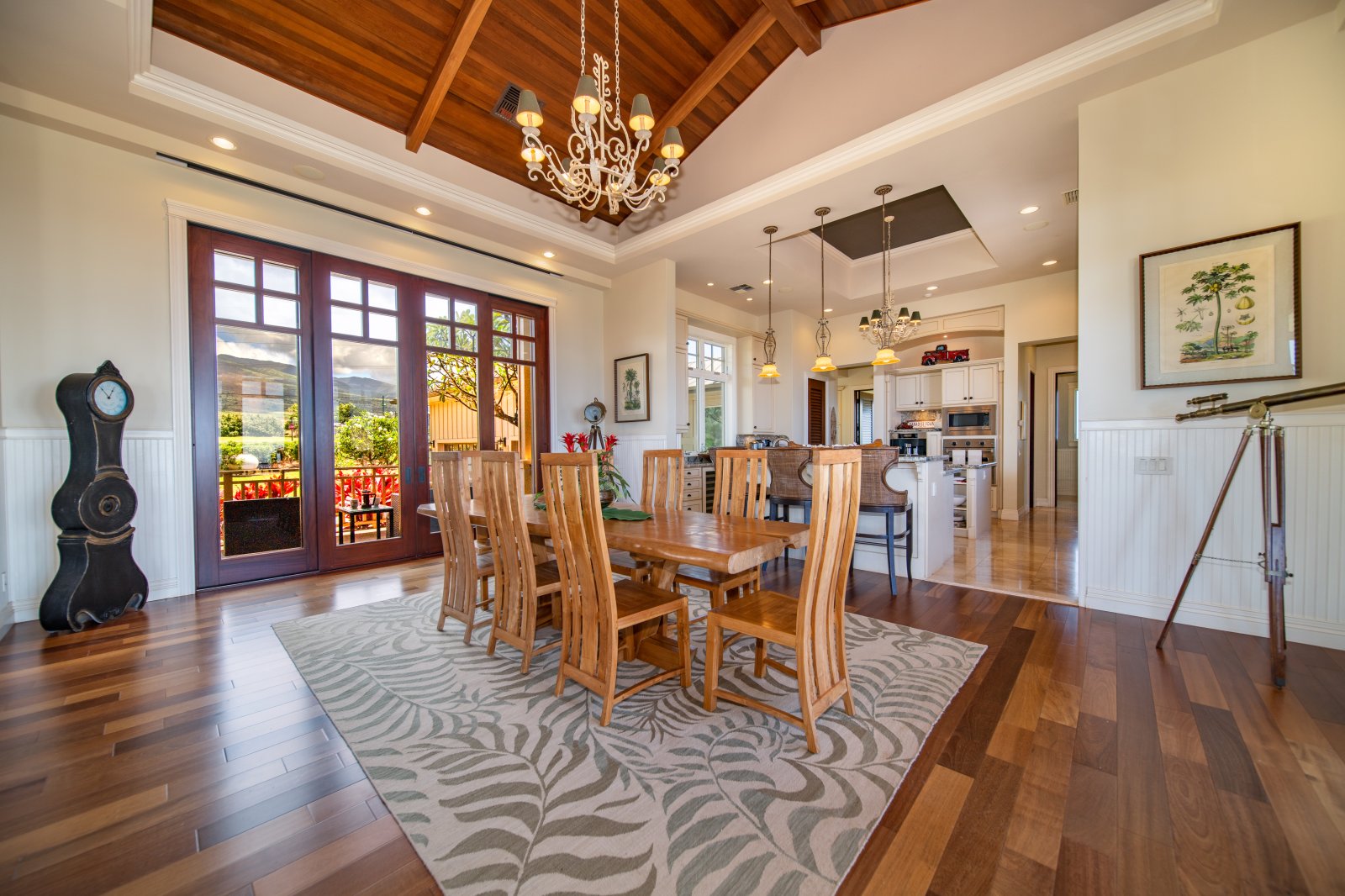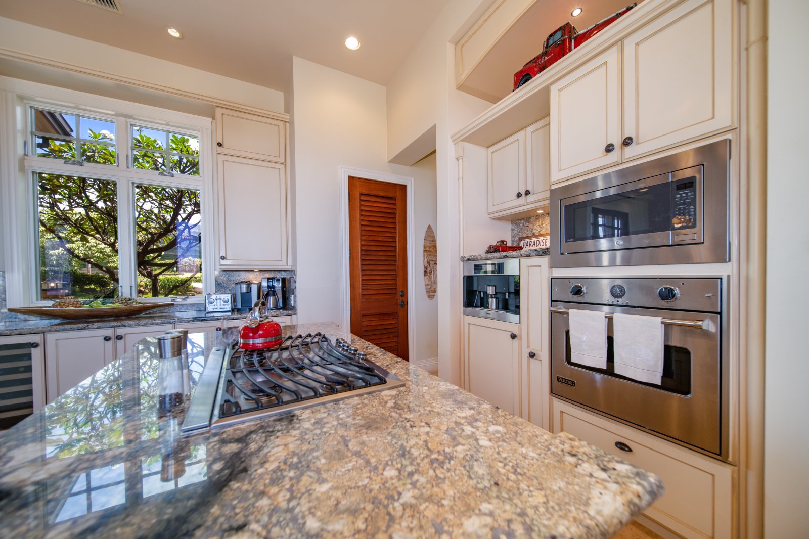 With approximately 3,600 square feet of indoor living space and 2,400 square feet of outdoor lanai space, there is plenty of room for relaxation. You can relax the day away in the infinity pool and Jacuzzi spa, and enjoy breathtaking views of the slopes of coffee trees, enchanting Hawaiian sunsets and the sparkling blue Pacific Ocean.
