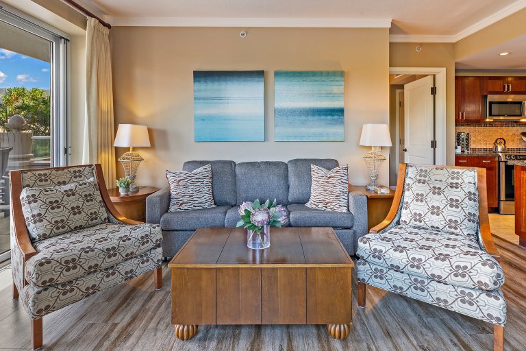 Central A/C • High-speed Wi-Fi (300 Mbps) • In-unit washer/dryers • Ohana Play Package (beach chairs, BBQ tools, cooler) • Pack-’n-Play, futon, high chair available upon request • 24-hour self check-in
