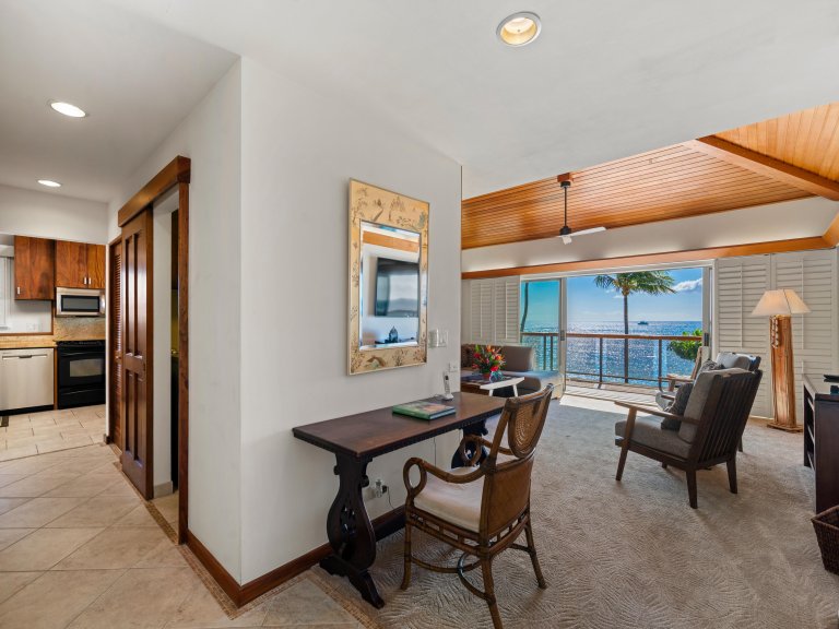 Added luxuries include a private laundry room with full size washer and dryer, making extended stays on Maui a breeze. A work desk off the living room creates a nice retreat for checking your emails or attending a virtual meeting if necessary.