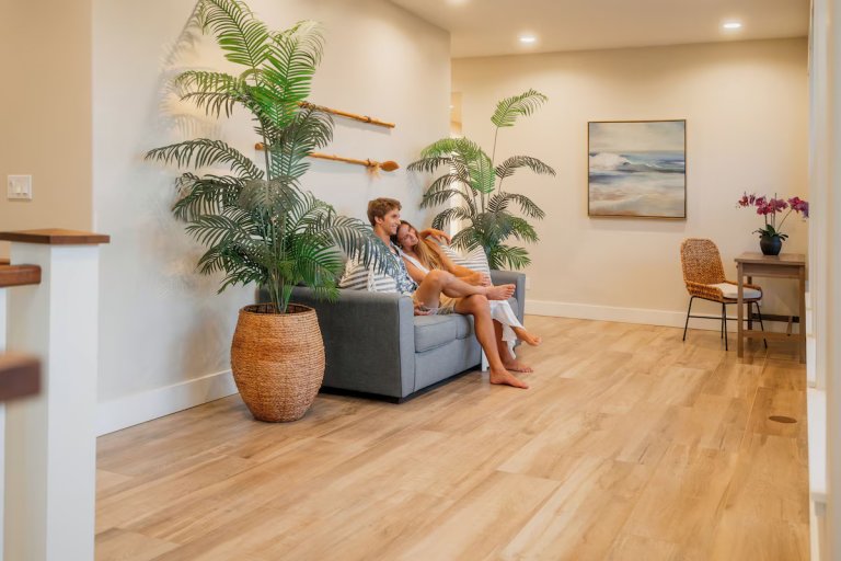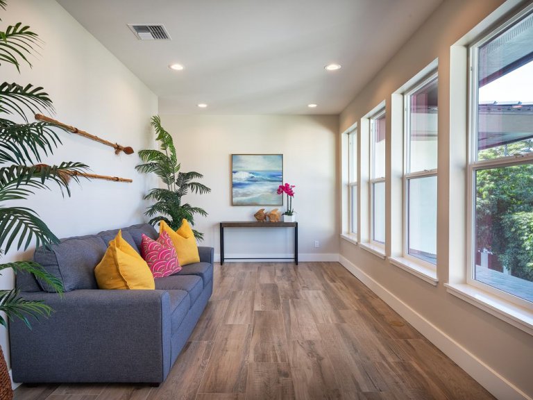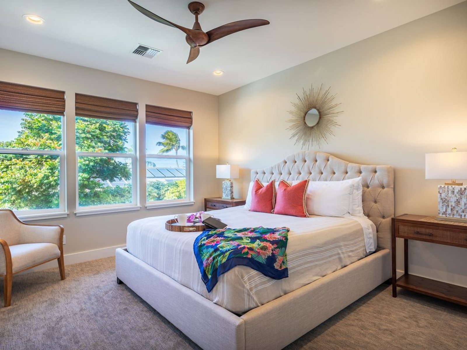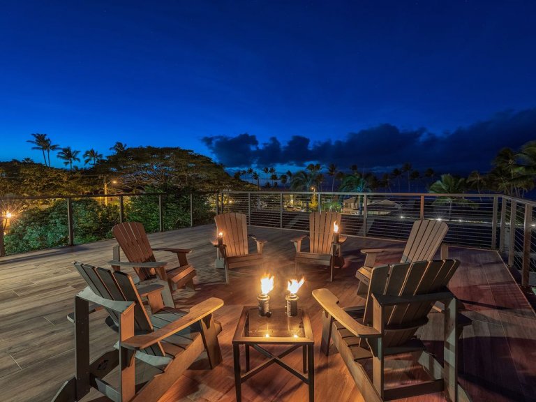 Modern conveniences abound, including high-speed WiFi, central air conditioning, multiple smart TVs, and three sets of washers and dryers to support longer stays. The home’s crowning feature is the expansive 800-square-foot rooftop deck, which offers breathtaking panoramic views of the Pacific Ocean and nearby islands Moloka‘i and Lāna‘i. It’s the perfect setting for sunset cocktails, stargazing, or even an intimate wedding or special celebration. While events are generally limited out of respect for the surrounding community, certain exceptions may be considered upon request.