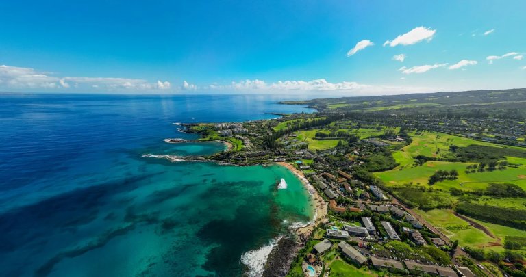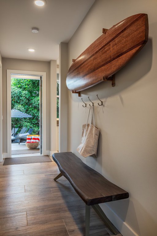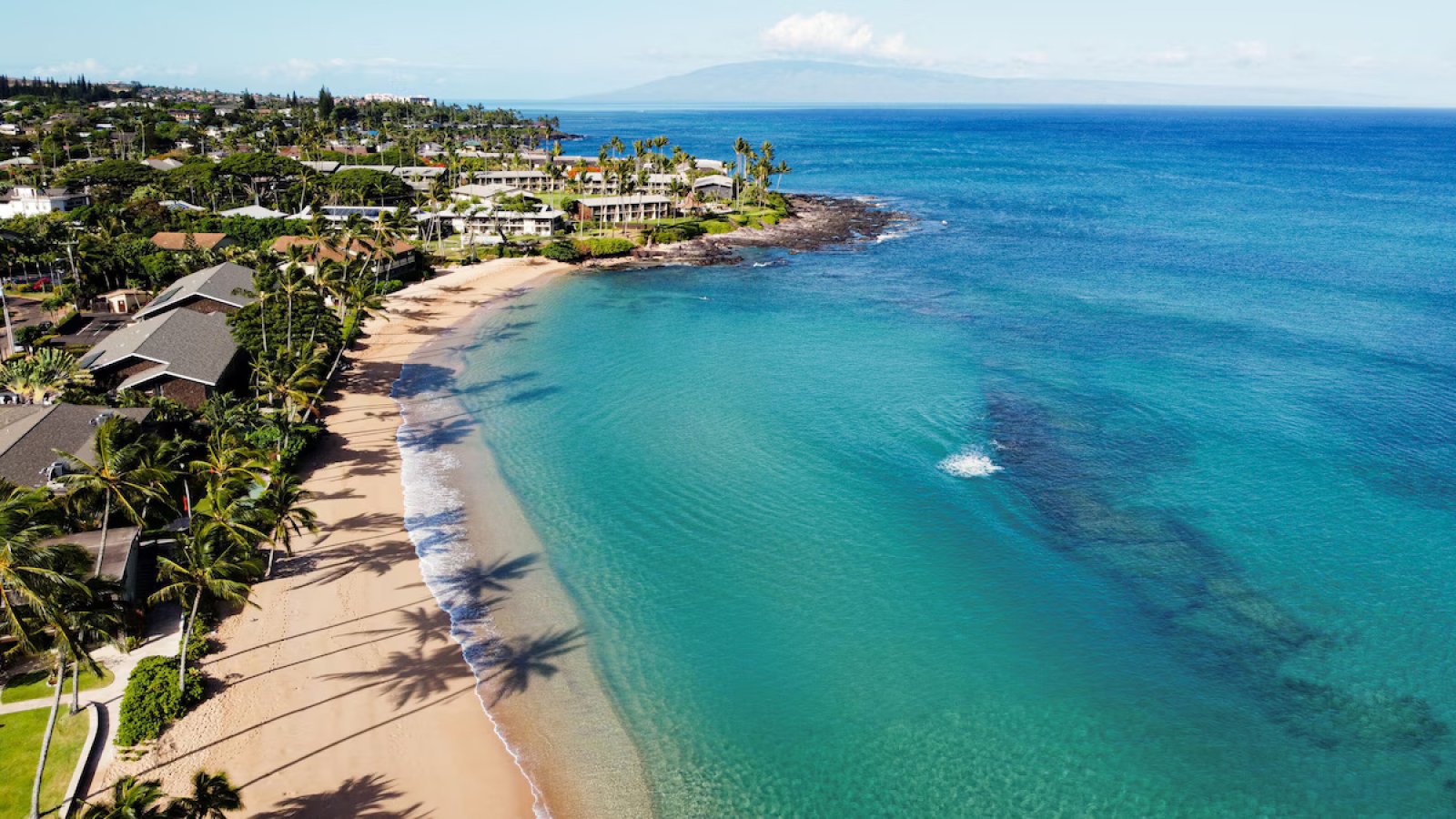 Step outside to discover a resort-style backyard created to delight guests of all ages. The centerpiece is a custom-designed pool, more than a year in the making, featuring an oversized shallow sun shelf with in-water loungers, a rock waterfall, and a twisting waterslide. The outdoor area also includes a large grassy lawn, high-end patio furnishings, and your very own private pickleball court—a unique amenity perfect for island-style recreation. With direct beach access just steps from the home and no roads to cross, guests can enjoy one of Maui’s top family-friendly sandy beaches in under 30 seconds. The bay-protected shoreline offers calm, swimmable waters ideal for young children, and the area is known for excellent snorkeling, often graced by sea turtles just offshore.