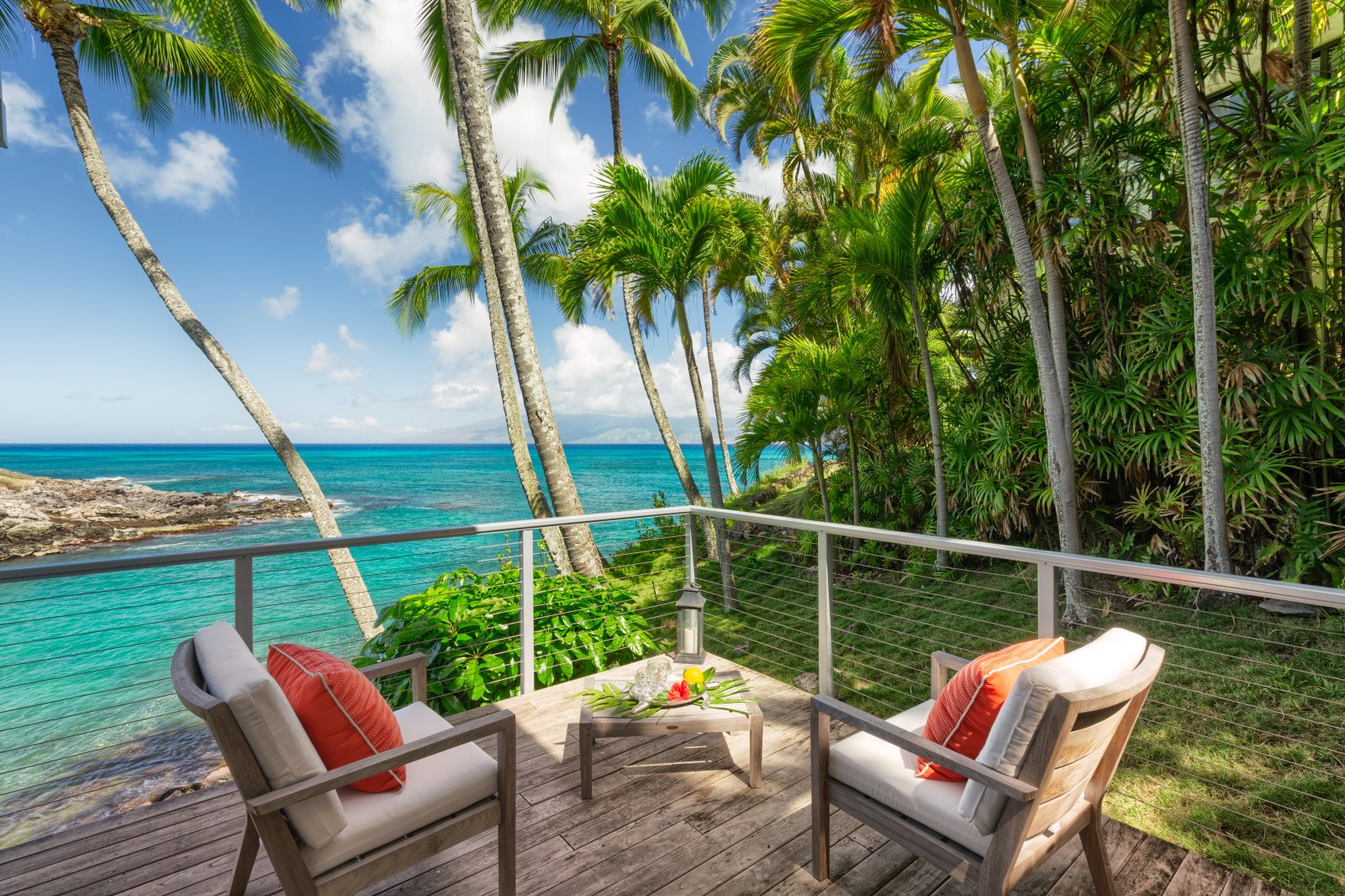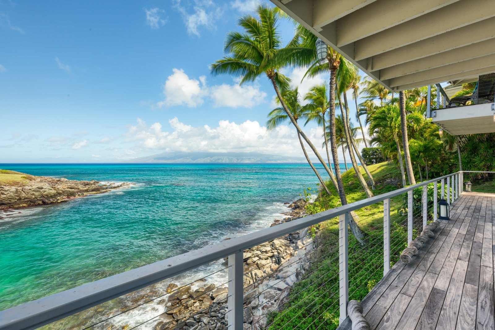 Enjoy outdoor living on the villa’s decks, which are strategically positioned to take in the stunning views of the ocean and the Hawaiian island of Molokai, shimmering in the distance. The decks come complete with cushy lounge chairs for relaxation and grill and dining area for preparing and serving meals alfresco!