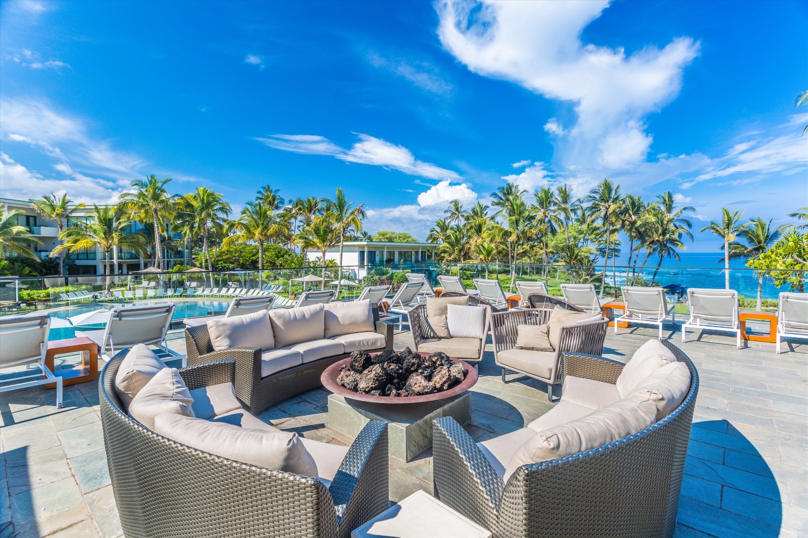 Andaz Maui at Wailea Resort is a sublime tropical eden situated directly on golden Mokapu Beach. With a west-facing location, guests will bask in an abundance of sunshine. Blazing sunsets color the early evening sky, and brilliant moonsets illuminate the deep blue Pacific until late into the evening. Enjoy full panoramic ocean views from this 2nd floor setting. Hang out on the beach for a spectacular show of sparkling stars at night. Enjoy a low density, low rise resort where waterfalls, tiki torches, and beautiful blooming flowers and verdant green fauna decorate your surroundings. The expansive swimming pools are a first for Maui. The flowing water begins its journey at the entry lounge, then gently cascades down through sloping terrain until it gently ponds in the large pool directly in front of Villa 813 and just above Mokapu Beach.