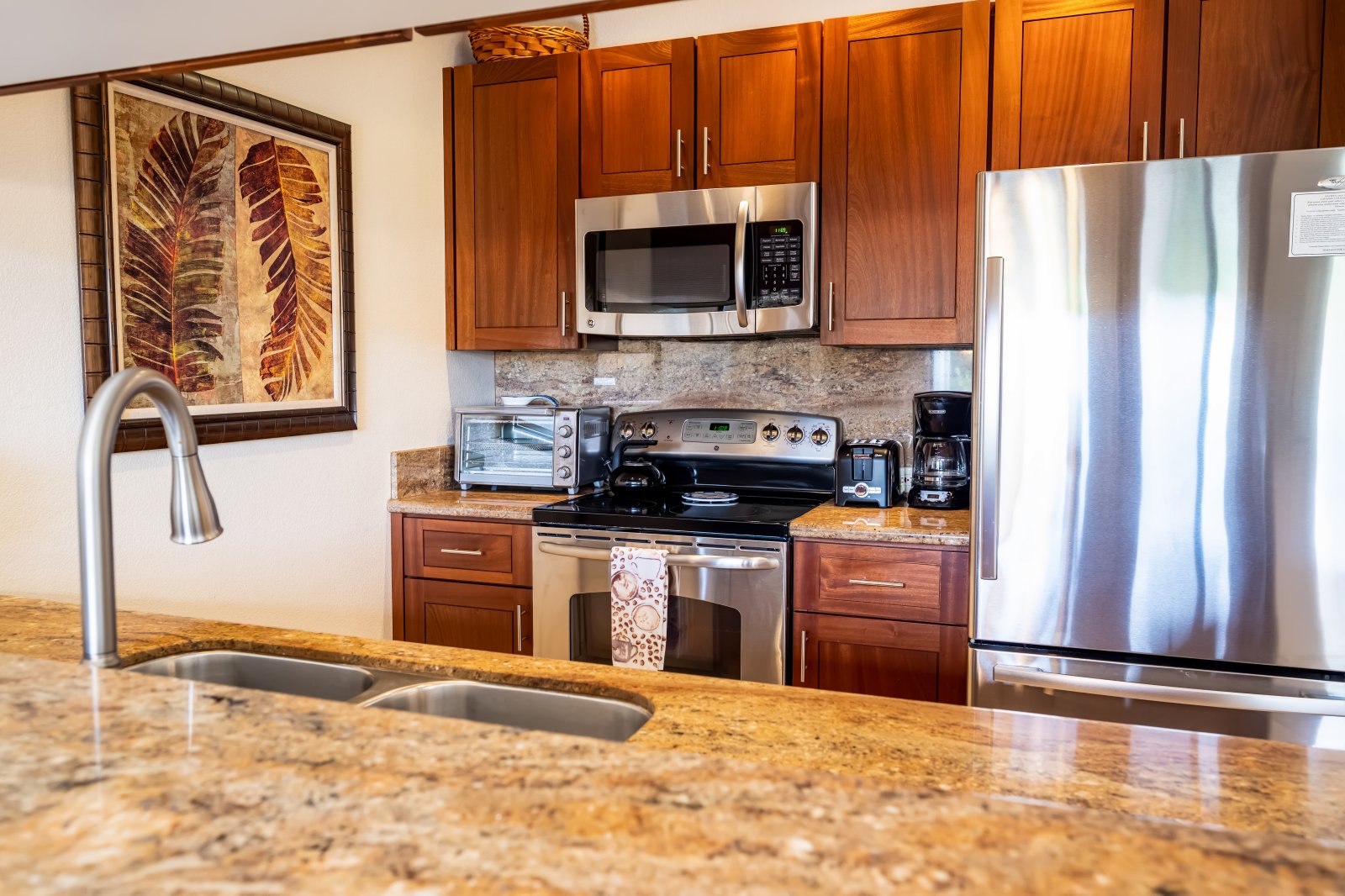 Fully Equipped Kitchen Stainless Steel Appliances, Dishwasher, Oven, Coffee Maker • Ice Maker • Microwave • Toaster