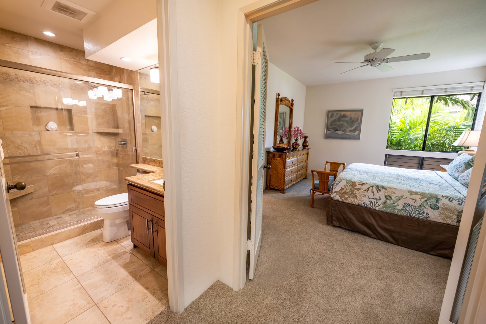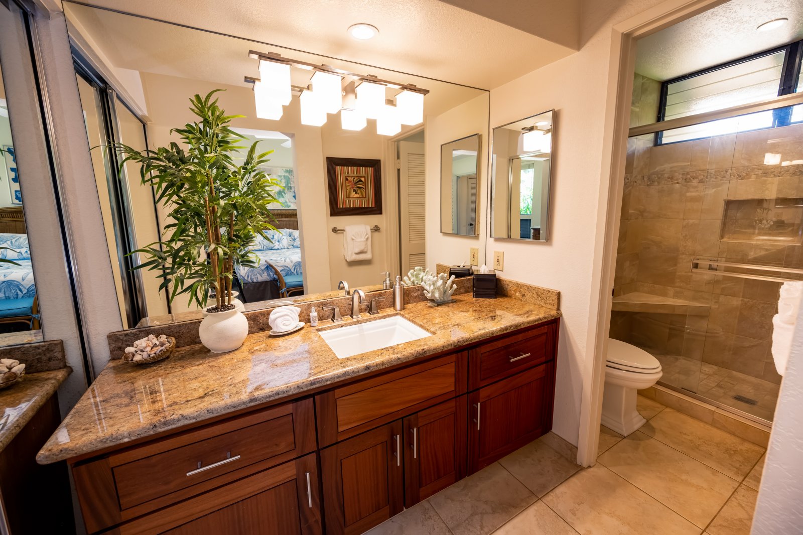 Bldg. - 6 - Unit#54 - New Furniture! New personal amenities! new soft goods! An impeccable 1 Bedroom + 2 Bathroom paradise condominium at the Wailea Grand Champion Villas. Wailea Grand Champions Golf Villas is in the heart of the Wailea Resort Community in sunny South Maui, nestled between the championship Ol’ Blue Golf Course and the award winning Wailea Tennis Center. Lush tropical gardens and swaying palm trees surround all 188 units, two swimming pools, two Jacuzzis and four gas BBQ grills to enjoy. Shopping, dining, activities, and amenities are conveniently located within walking distance. Beautiful Wailea beaches are just a short drive away or a 15–20-minute walk from the Villas. Wailea Grand Champions Golf Villas offers great values and views in the heart of the upscale Wailea Resort community. This moderately priced, luxury property is in the center of Wailea’s Ol’ Blue Golf Course, with contemporary villas featuring private lanais for sunset views over the fairways to the West Maui mountains. Wailea area resorts, spa facilities, and award-winning restaurants are within walking distance, and Wailea’s fabulous beaches are a leisurely 15-minute walk or easy 3-minute drive from the Wailea Grand Champions Villas. Wailea Gateway Center, Wailea Town Center, The Shops at Wailea, and the newest shopping/entertainment destination Wailea Village Center are all a few minutes’ walk from your vacation home at Wailea Grand Champions.