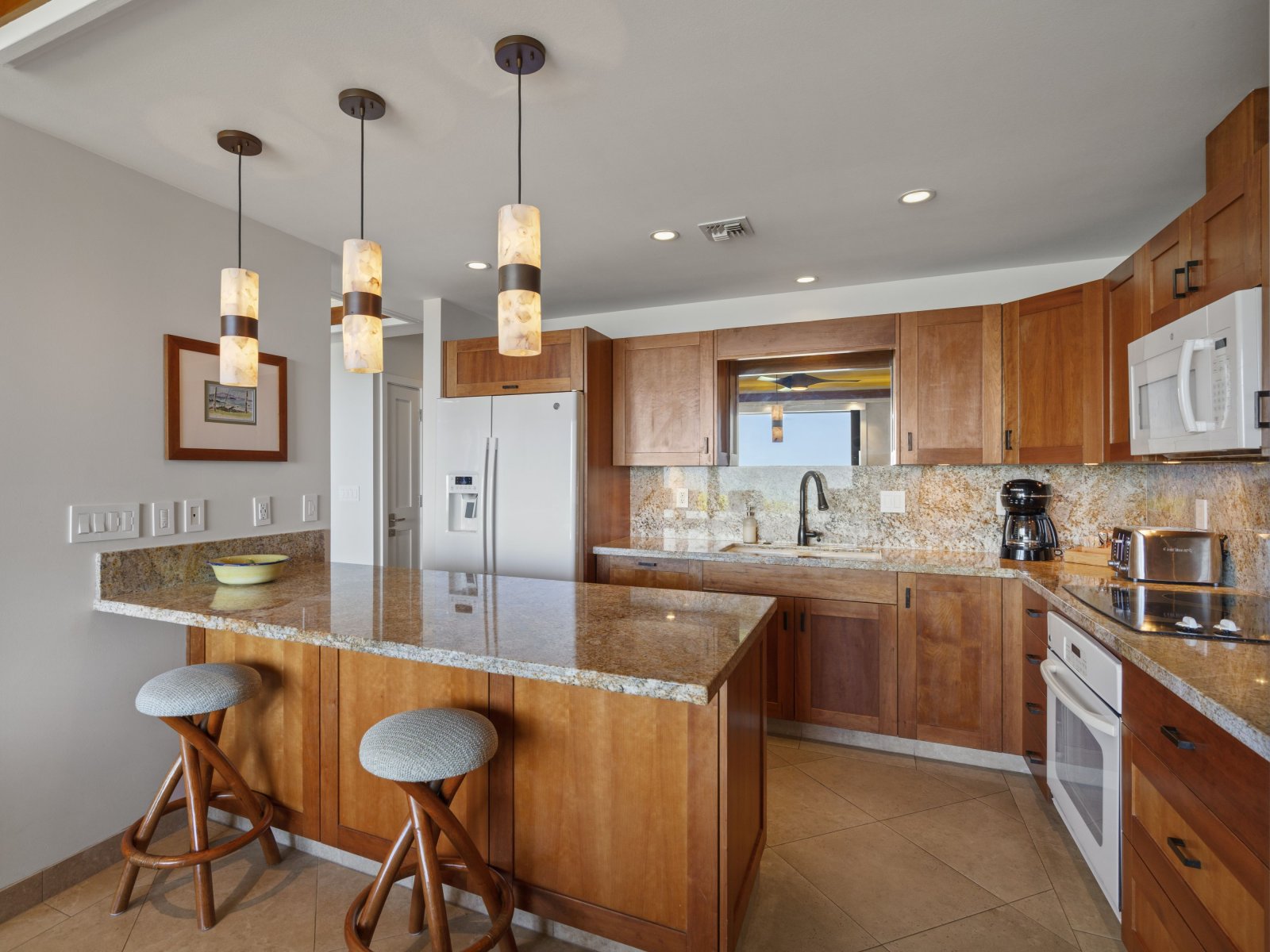 This resort condo is designed with your relaxation in mind. Enjoy the convenience of a fully-equipped kitchen, complete with modern appliances, perfect for preparing your meals. The private outdoor balcony offers breathtaking views of the ocean, making it the perfect spot to unwind with a book or a glass of wine.