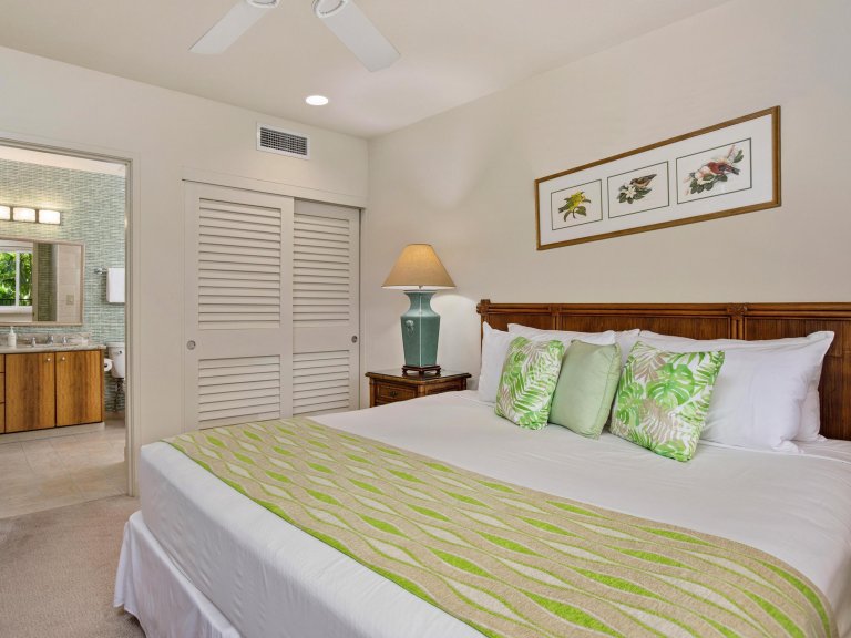 Bed: King Bed • En-Suite Bath with Walk-In Shower • TV • Ceiling Fan • Direct Access to *