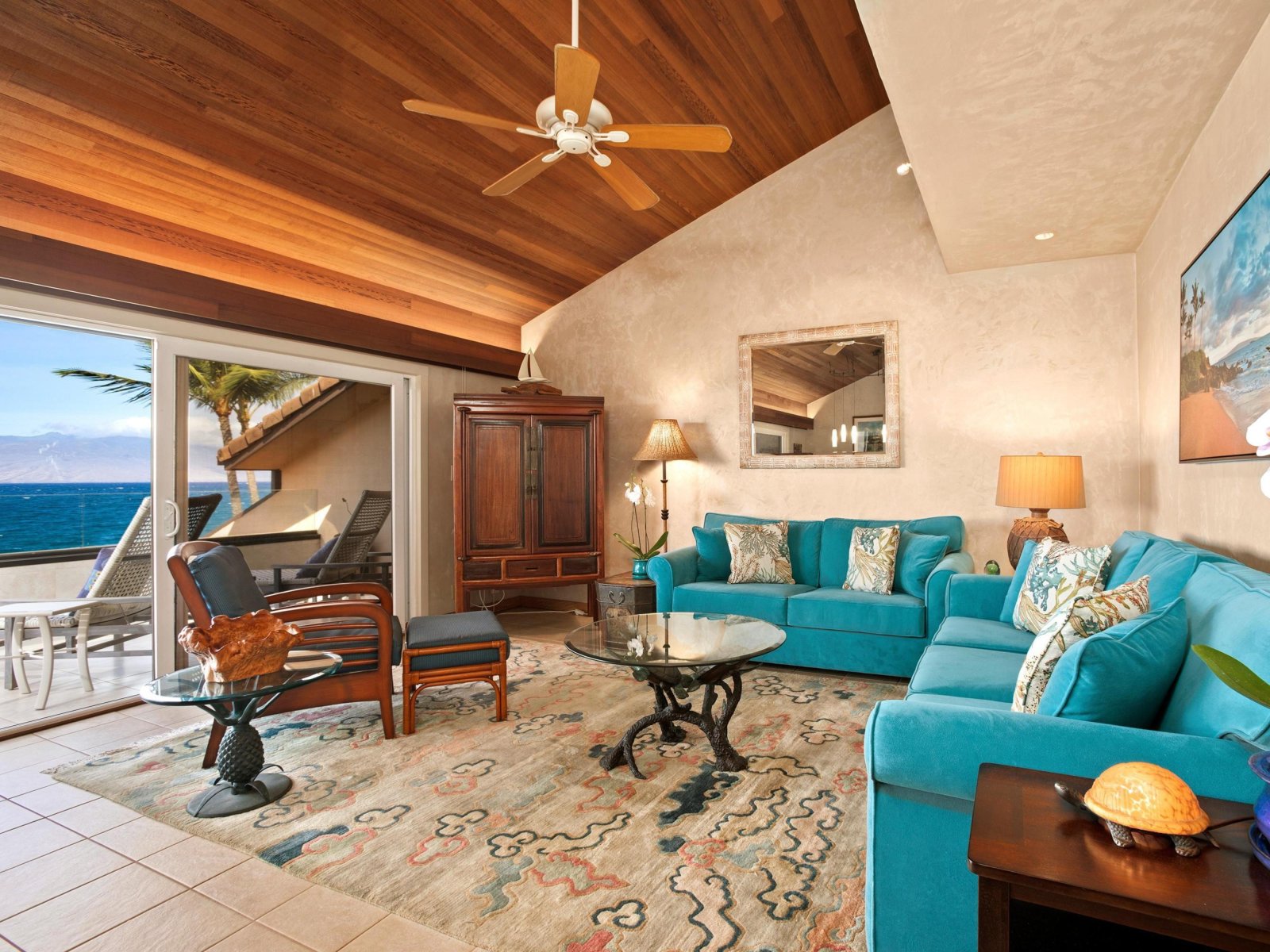 Step inside to discover a thoughtfully designed layout that maximizes comfort and style. The master bedroom features a plush king bed, while the second bedroom comfortably accommodates two guests with twin beds. Both bedrooms offer serene ocean views and direct access to the balcony, where you can unwind with a morning coffee or evening cocktail.