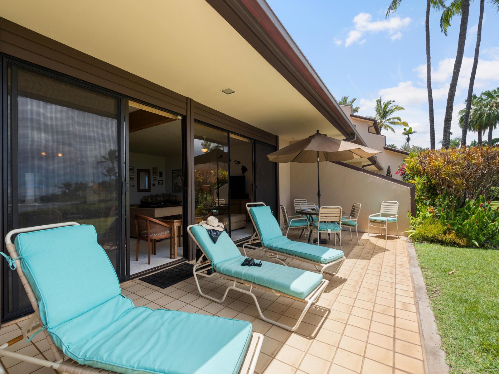Dining Table w/Umbrella * • BBQ Grill • Chaise Lounges • Ocean View
