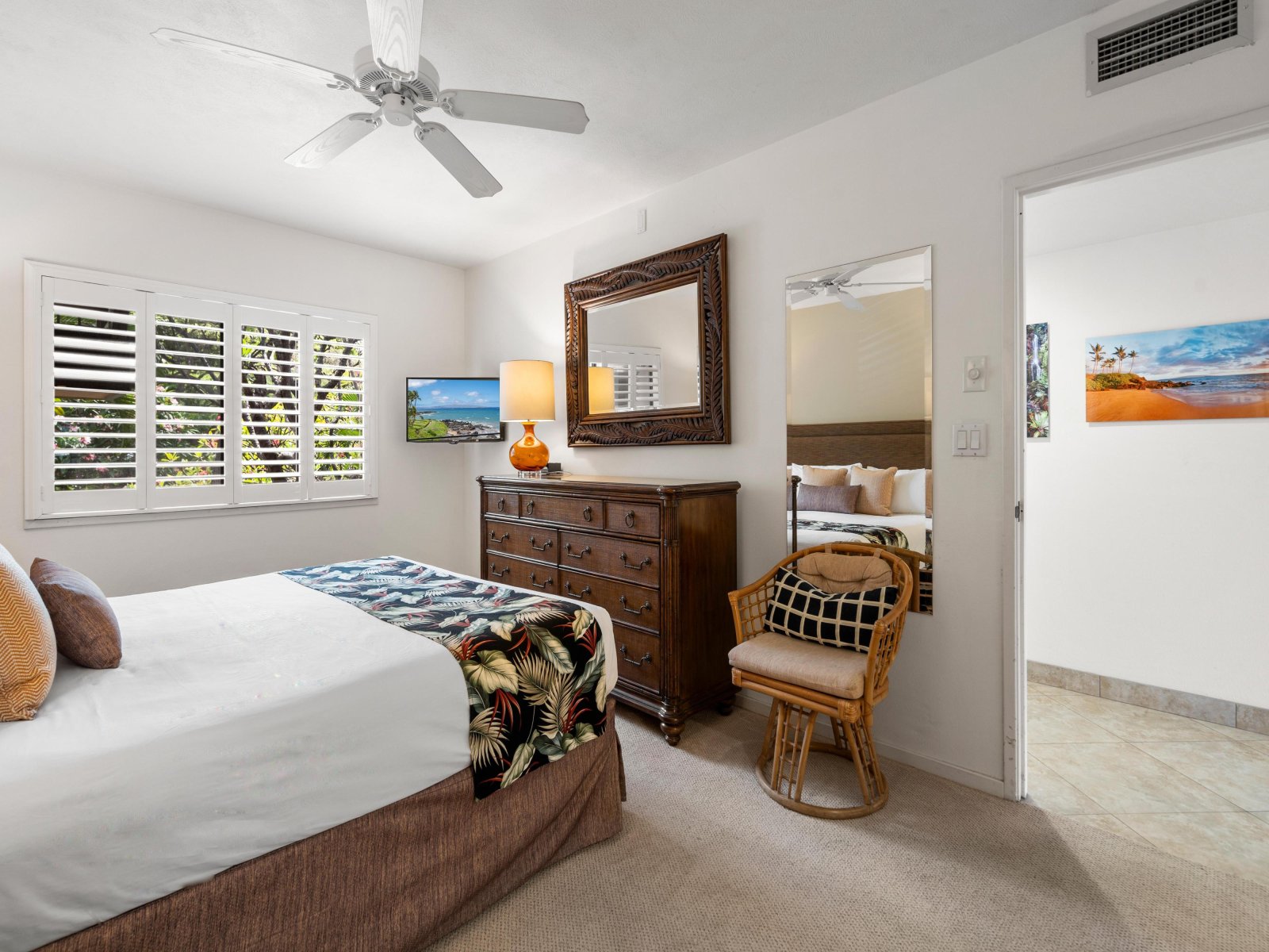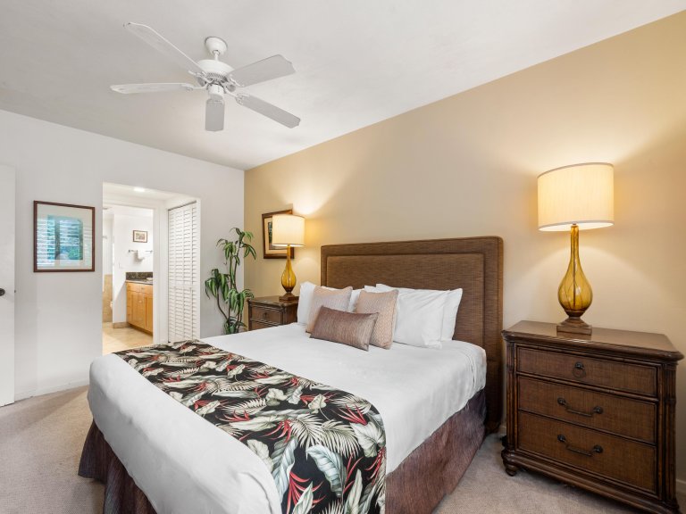 Bed: King Bed • En-Suite Bath with Dual Vanity * • TV • Ceiling Fan