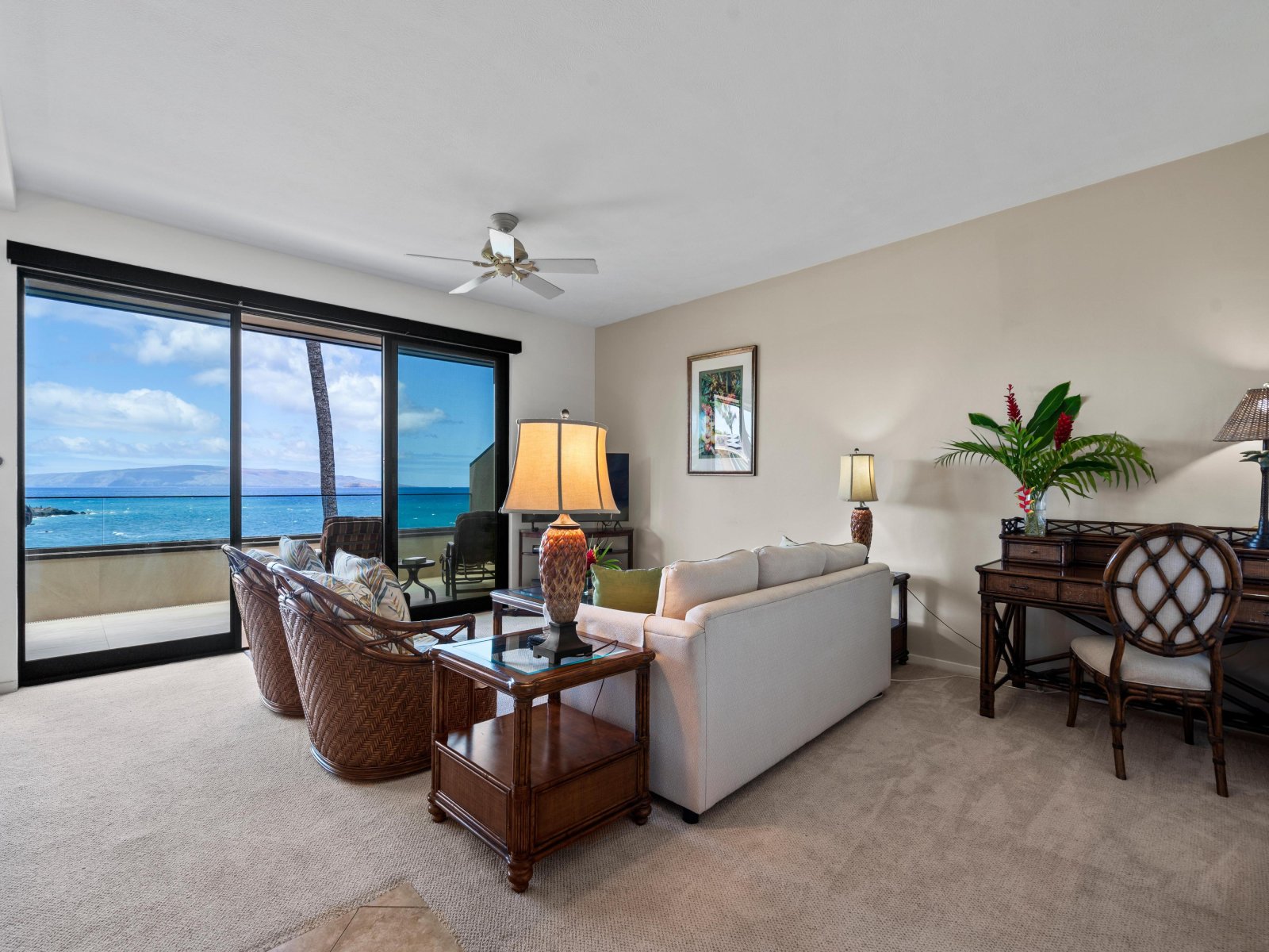 Bed: Sofa Sleeper • TV • Ceiling Fan • Ocean View