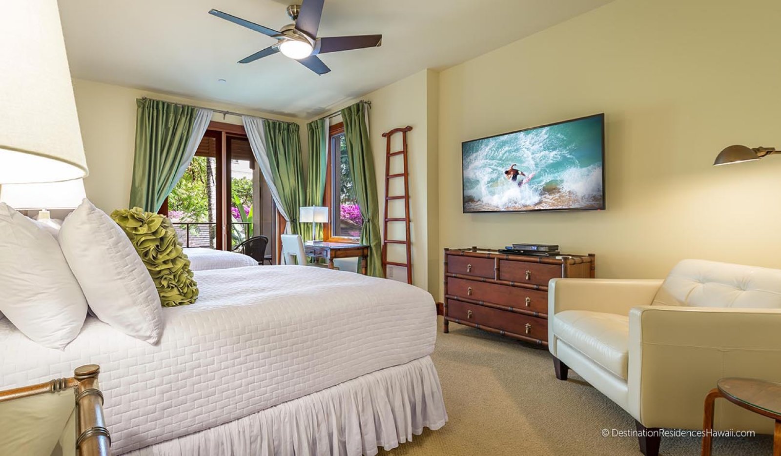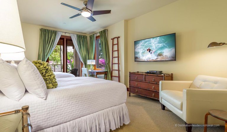 The third bedroom features two queen beds, its own private lanai, and an ensuite bathroom, making it ideal for children or additional adults.