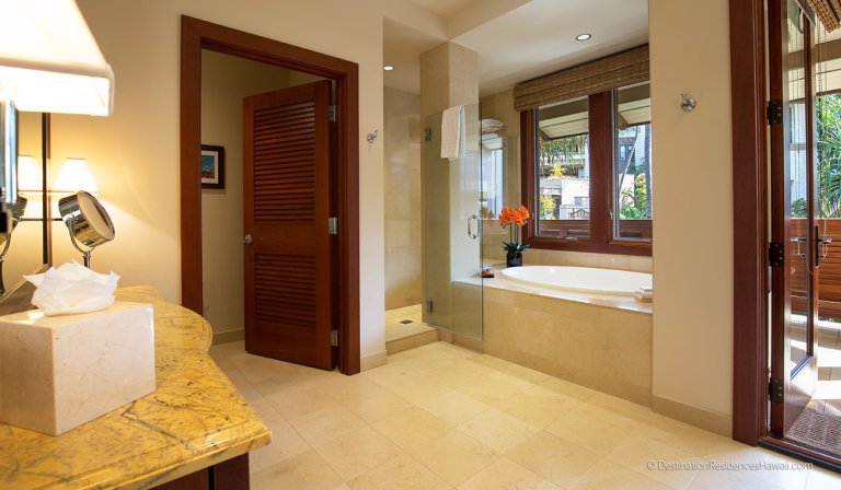 Villa E202 is centrally located within Wailea Beach Villas, offering easy access to the resort’s amenities and surrounding attractions. A short walk toward the beach leads to the adults-only oceanfront infinity pool and the Wailea Beach Walk. Heading in the opposite direction brings guests to the family pool, fitness center, billiards room, and private pedestrian access to The Shops at Wailea.