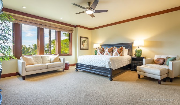 The layout of this pretty and spacious garden-view Wailea Beach Villa makes it ideal for friends sharing a vacation rental together or a family with older children seeking privacy.