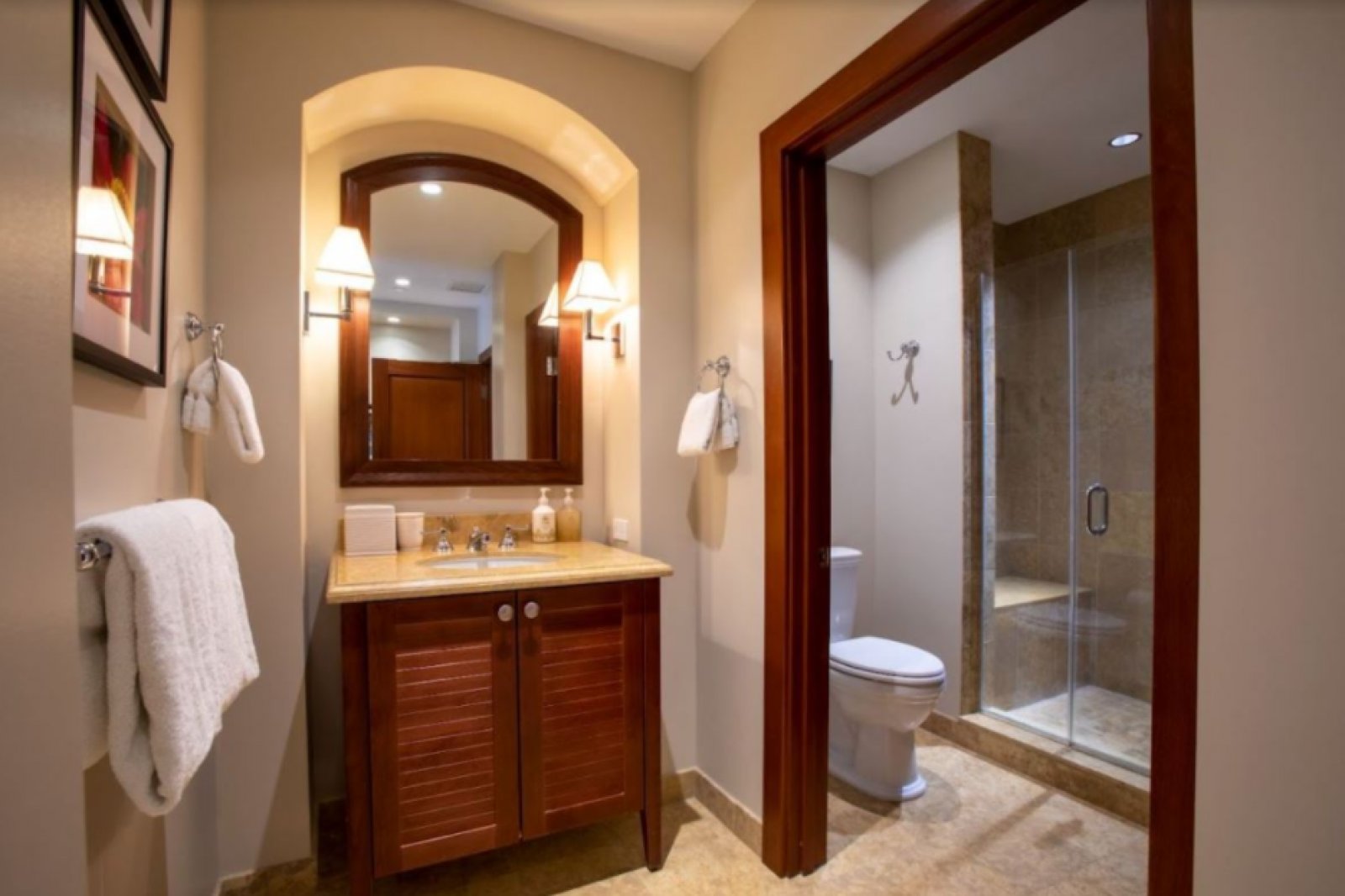 Each artfully-decorated bedroom has a flat-screen television and an en-suite bathroom as well as a dresser and night stand for storing all of your vacation essentials. Luxurious bath and bed linens are provided for your stay, and you will find a washer, dryer, iron, and ironing board in the laundry area behind the kitchen.