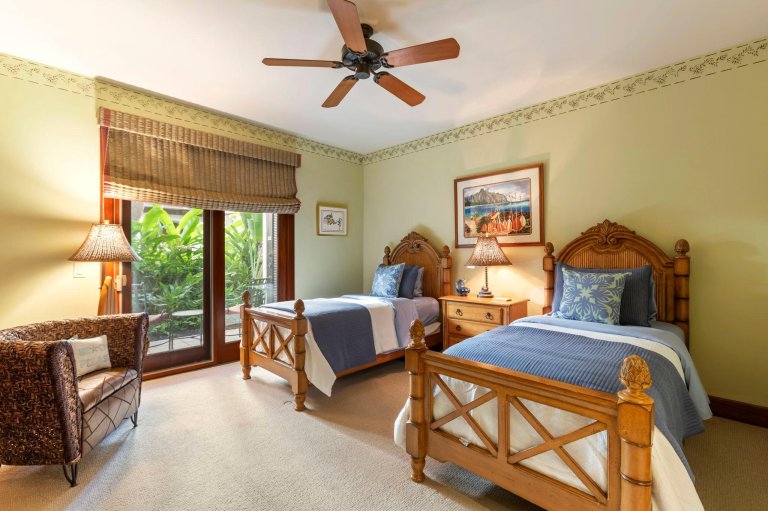 Located in its own private wing, the third bedroom offers two twin beds that