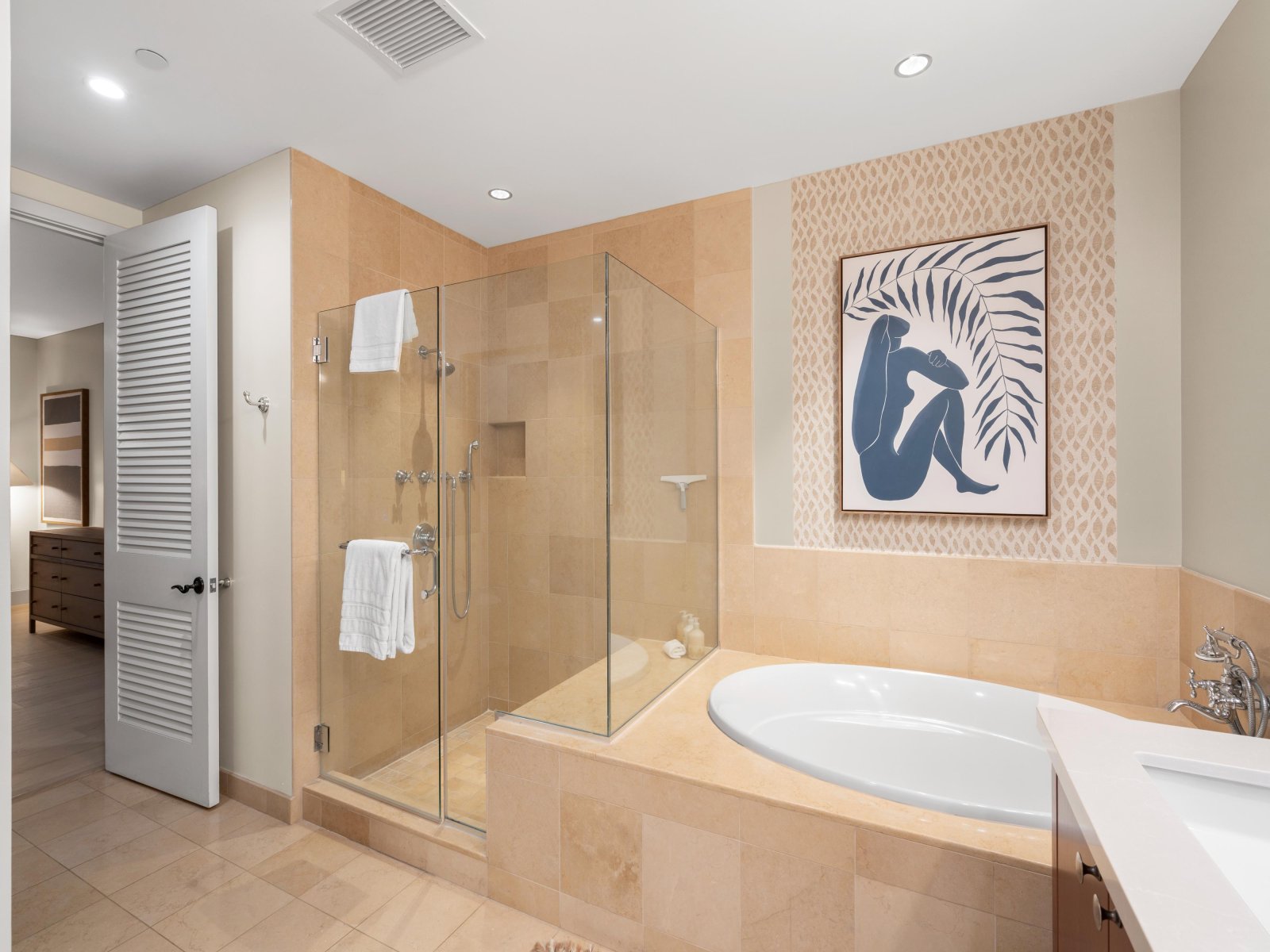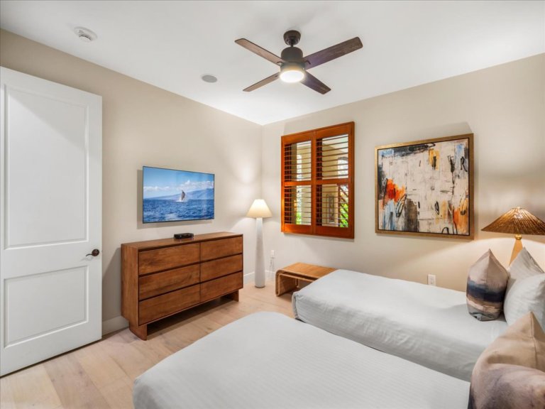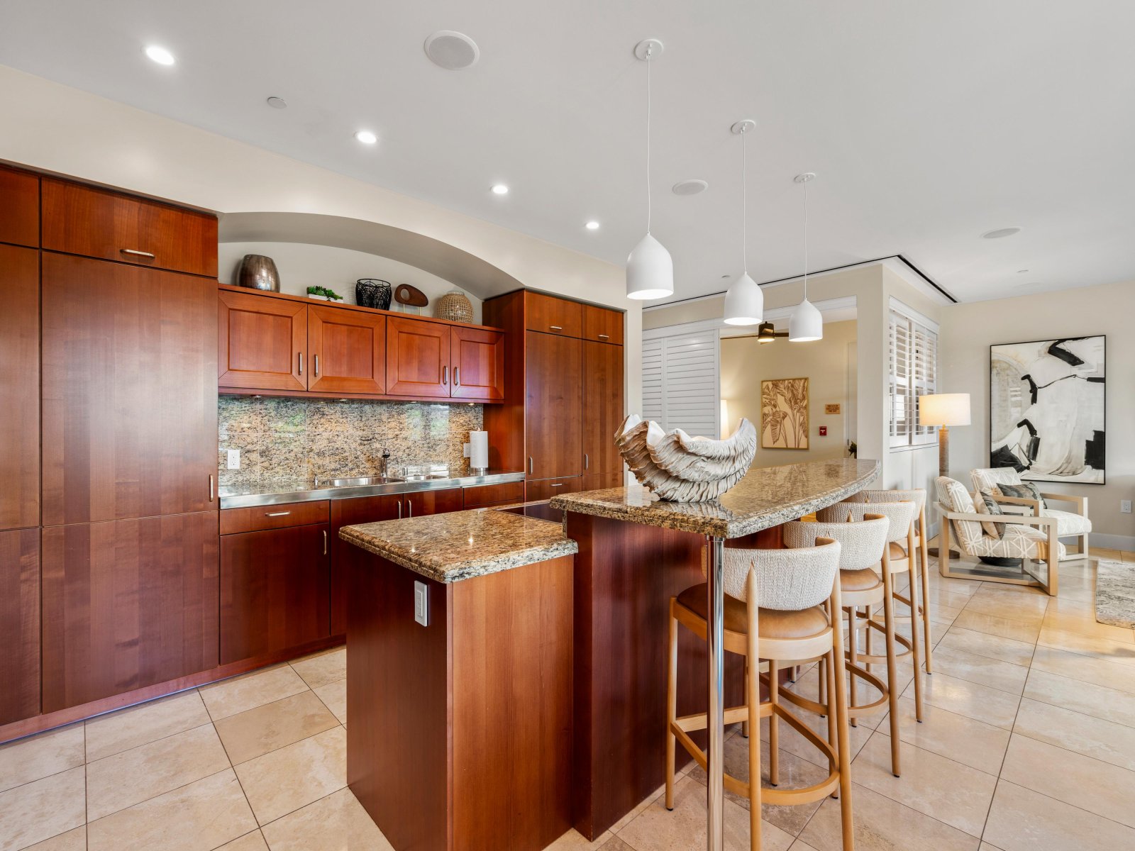 Surrounded by lush tropical landscaping, the villa provides a peaceful garden setting while remaining just steps from Wailea Beach, resort pools, and the shops and dining of Wailea.