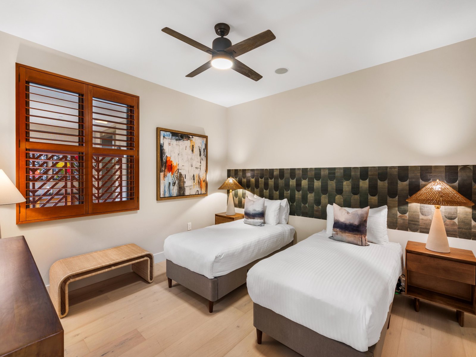 The second bedroom is equally well appointed and provides easy access to a full bathroom, offering comfort and privacy for additional guests.