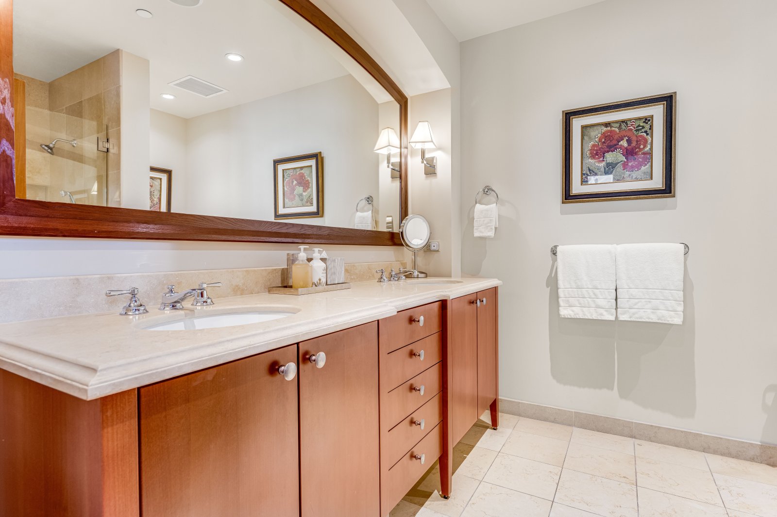 Step outside to the wraparound lanai to take in panoramic ocean views and tropical breezes. The villa is conveniently located within walking distance to the oceanfront infinity pool, where you can enjoy views of Wailea Beach and the coastal path. A semi-private elevator provides easy access to the residence, and on-site island hosts are available to assist with planning activities such as snorkeling, scuba diving, and more.