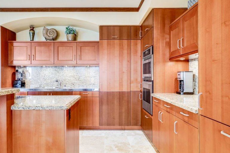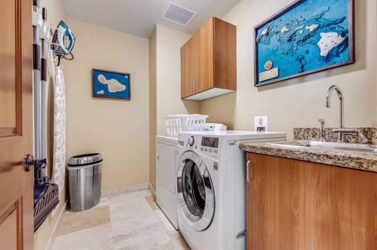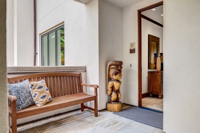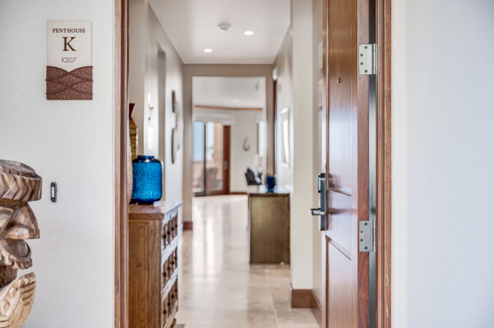 A private elevator from your reserved underground parking spot brings you directly to the penthouse entry, where lush tropical landscaping and a lava rock wall set the tone for your stay.