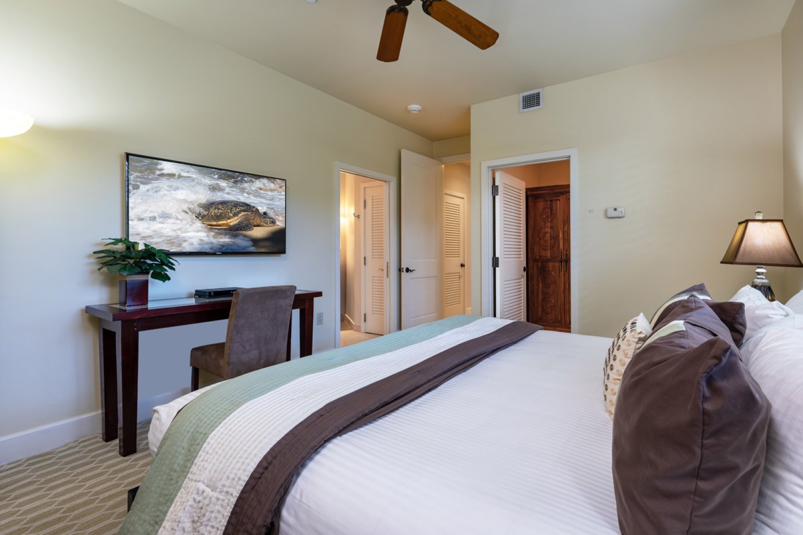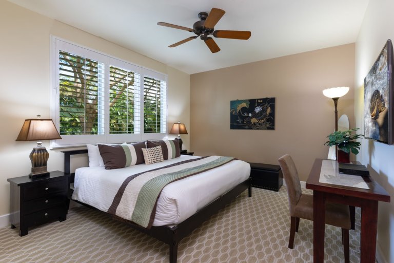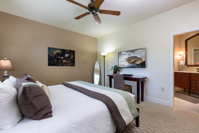 Bed: King Bed • En-Suite Bath • Flat-Screen TV • Ceiling Fan