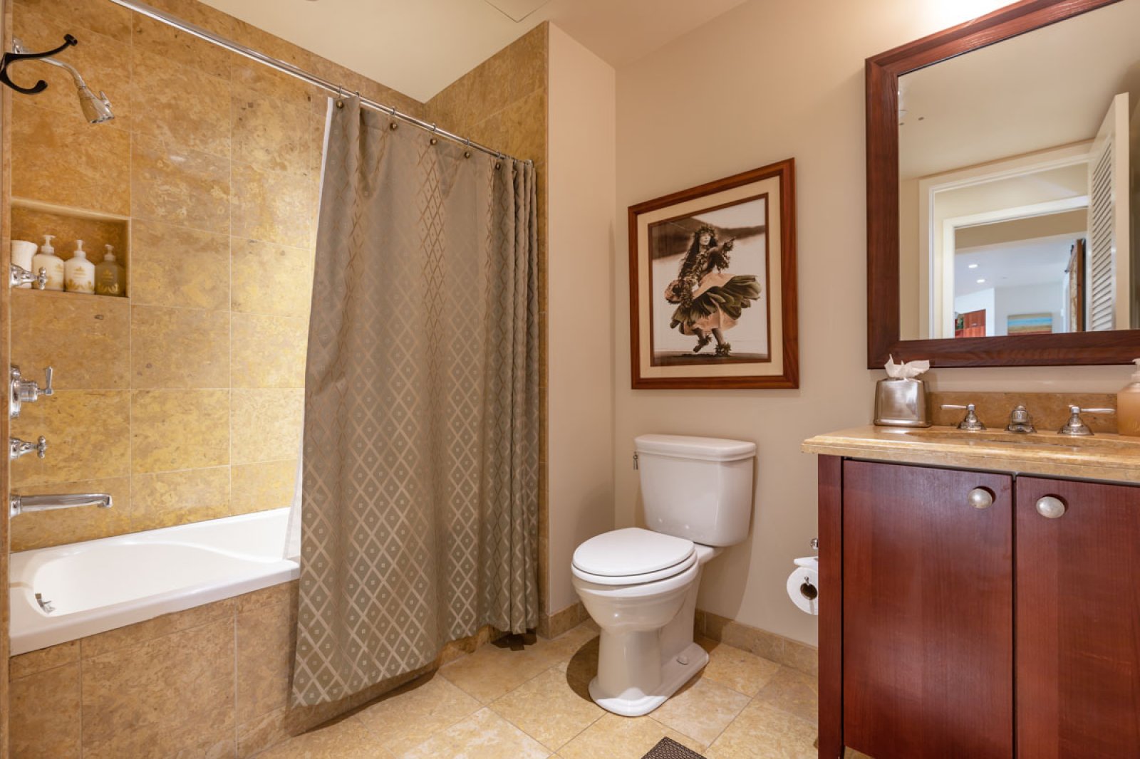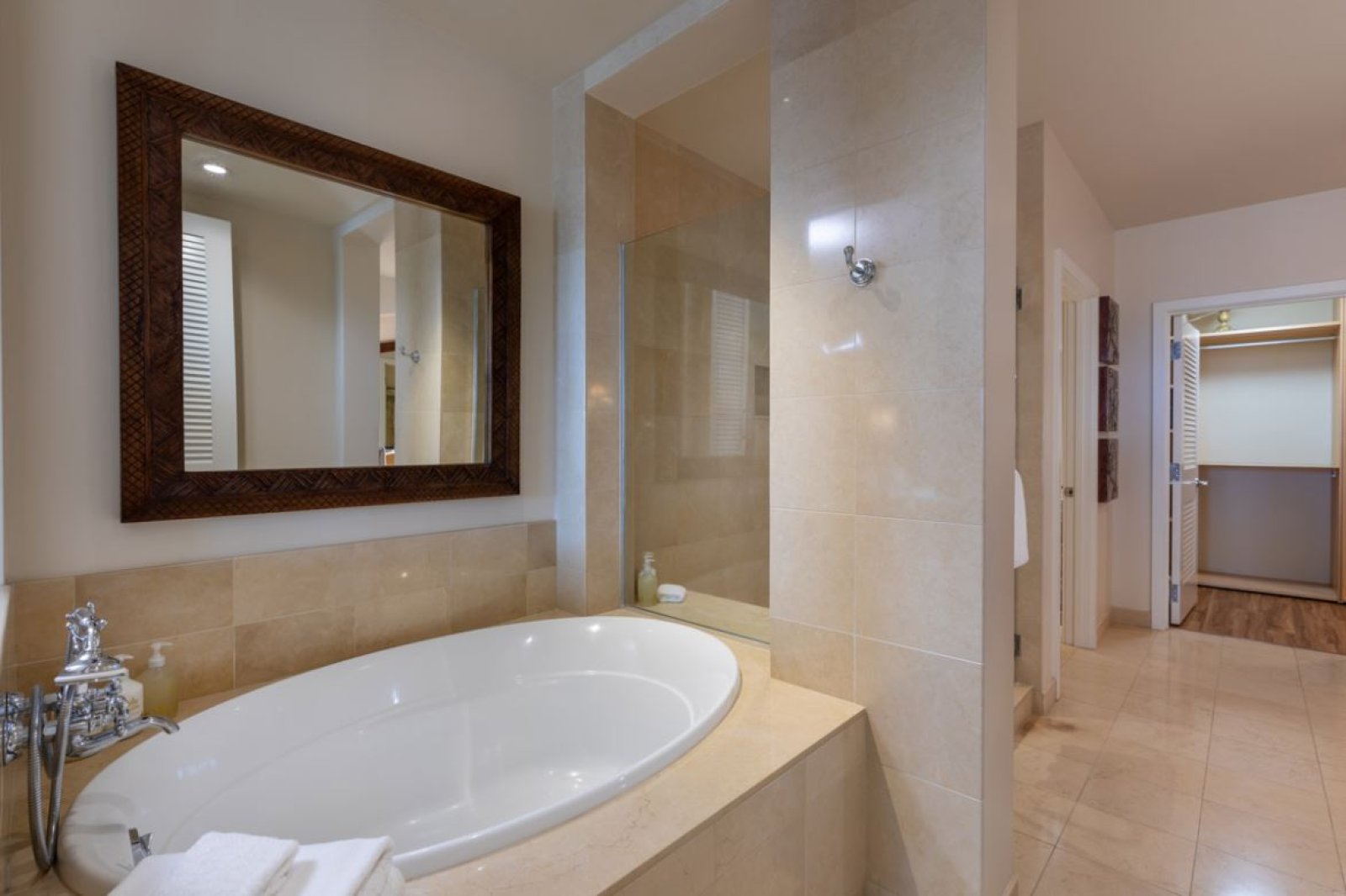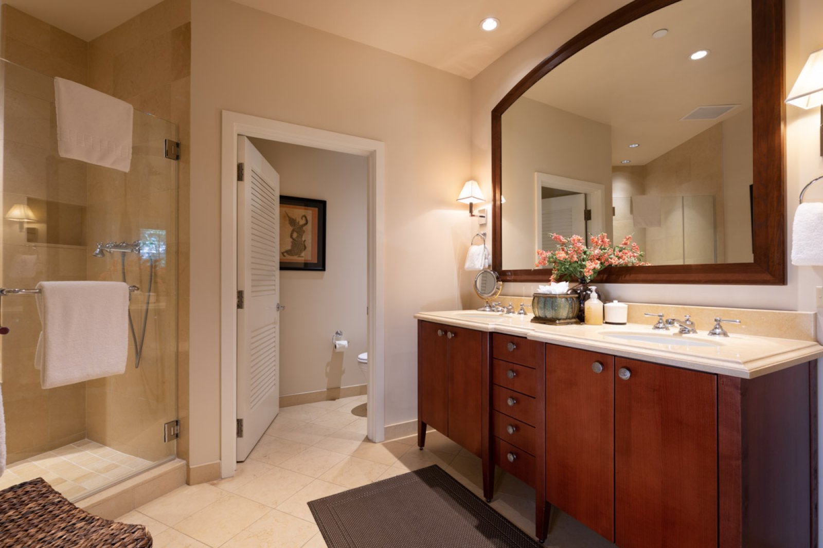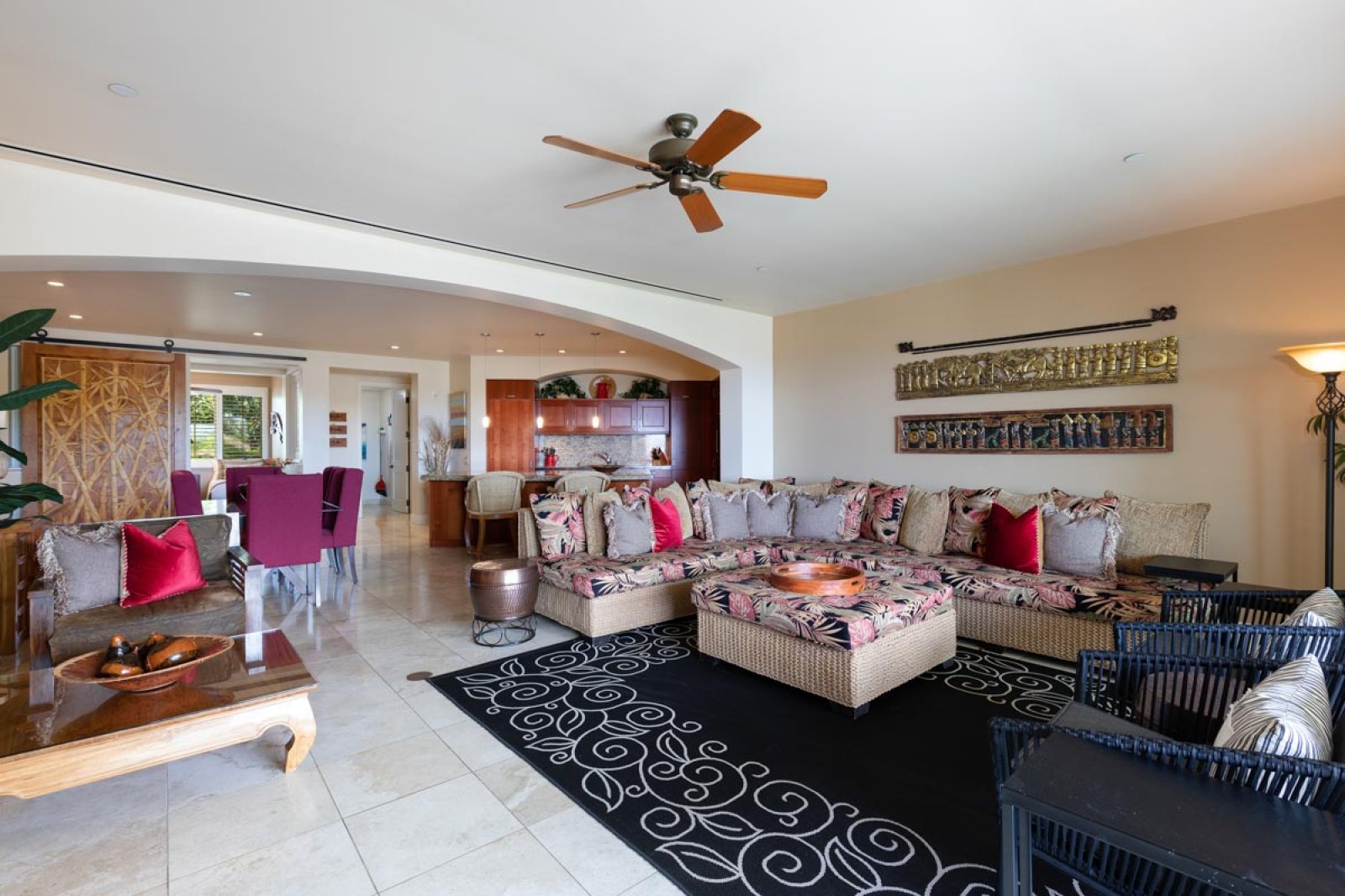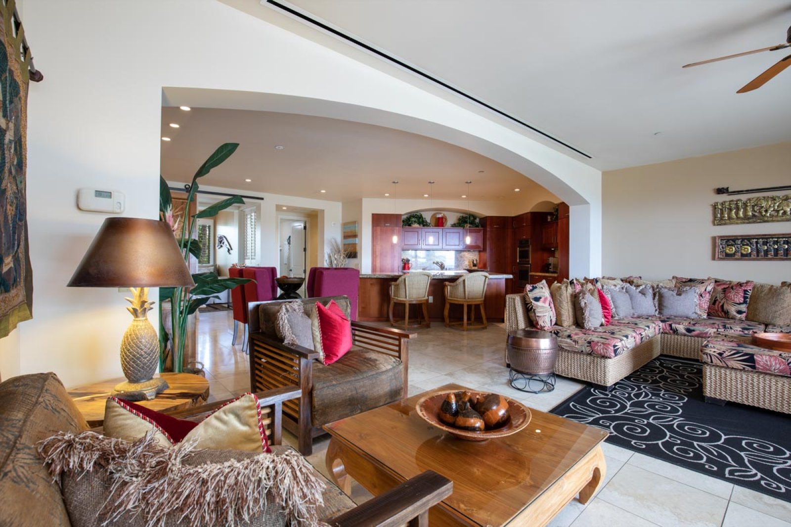 Designed for relaxed island living, the suite is filled with an international collection of art and artifacts that enhance the luxurious atmosphere. Every detail has been selected to create a warm, inviting space that feels like a private retreat.