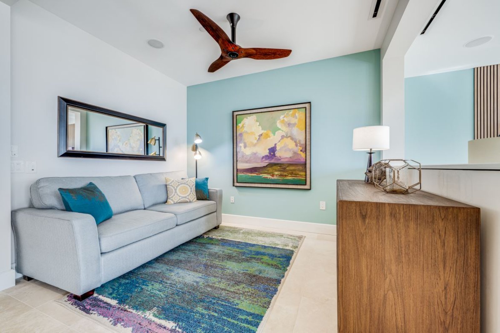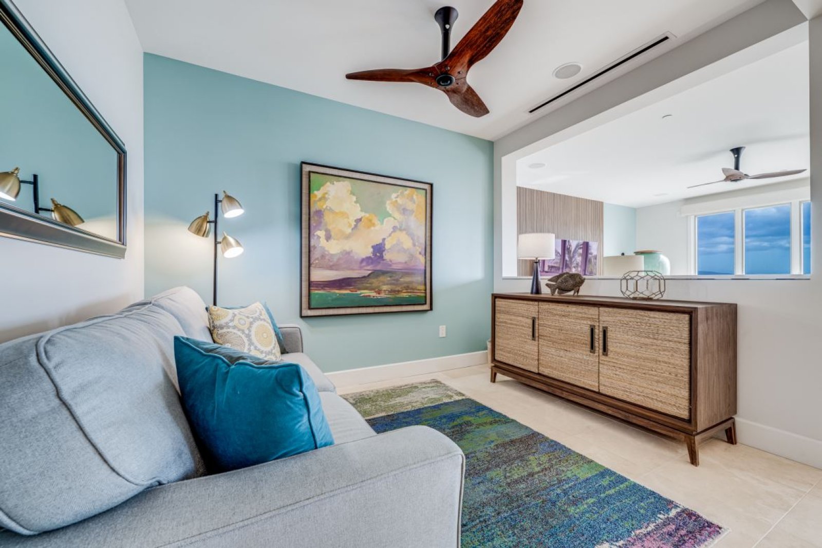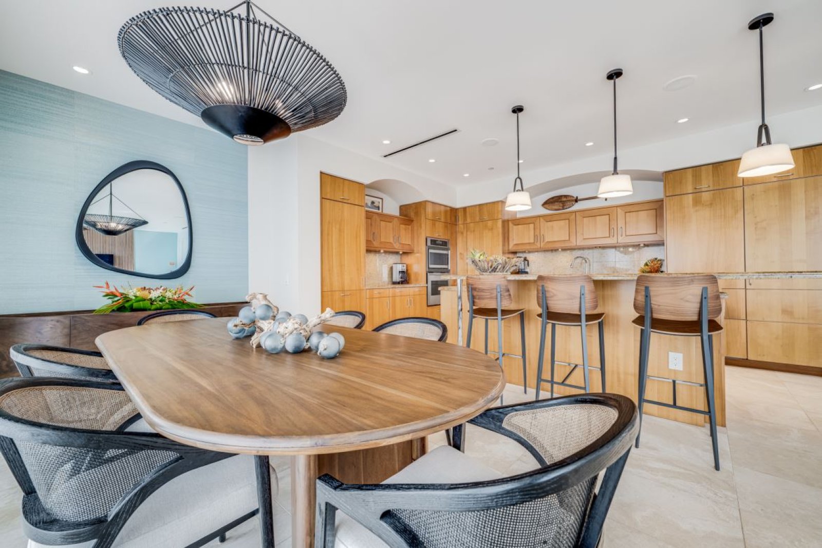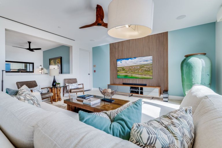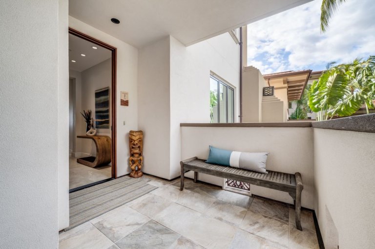 Thoughtfully curated interiors feature cool turquoise and warm cinnamon accents, original Hawaiian artwork, and modern finishes that feel both elegant and inviting. Positioned on the third floor, the penthouse enjoys enhanced privacy and panoramic vistas that elevate every moment of your stay.