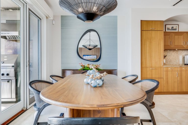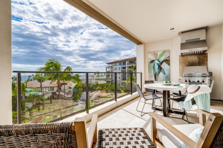 The private lanai serves as a front-row seat to Maui’s natural beauty. With comfortable lounge seating and a Viking grill, it is perfect for morning coffee, sunset cocktails, or evenings spent enjoying fresh island seafood. The lanai showcases expansive ocean views, including Molokini Crater, Kahoʻolawe, and Lānaʻi, often becoming a favorite gathering spot for guests.