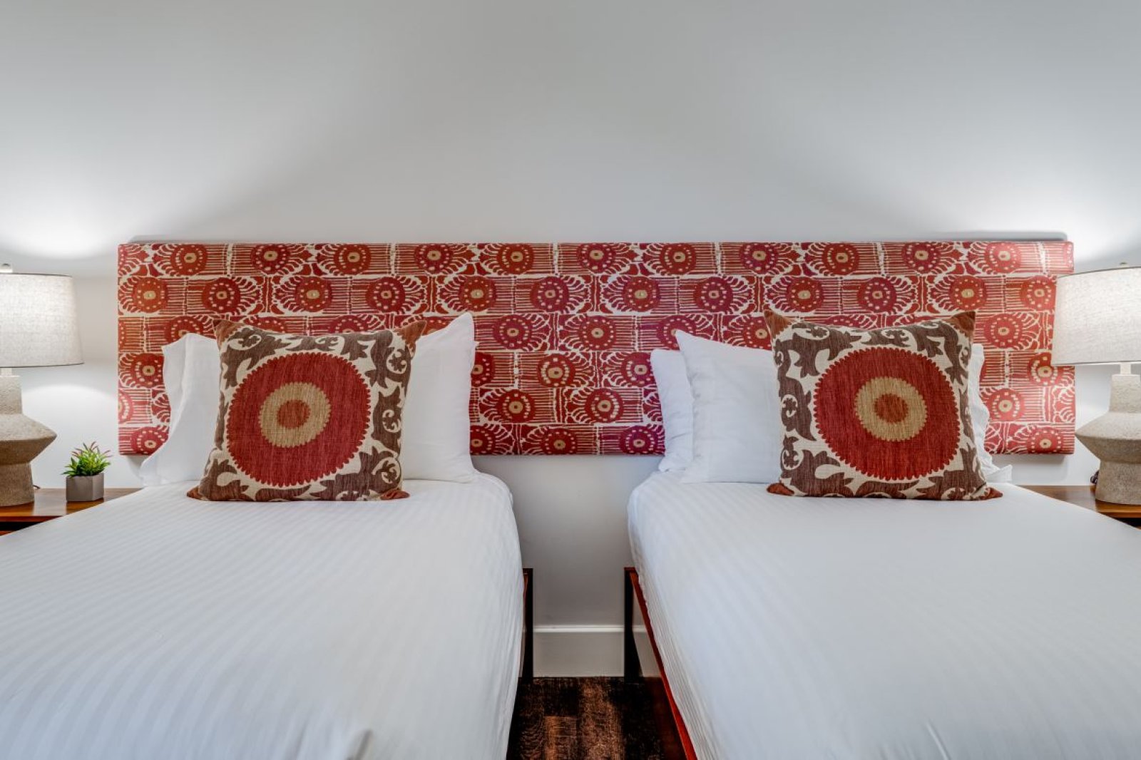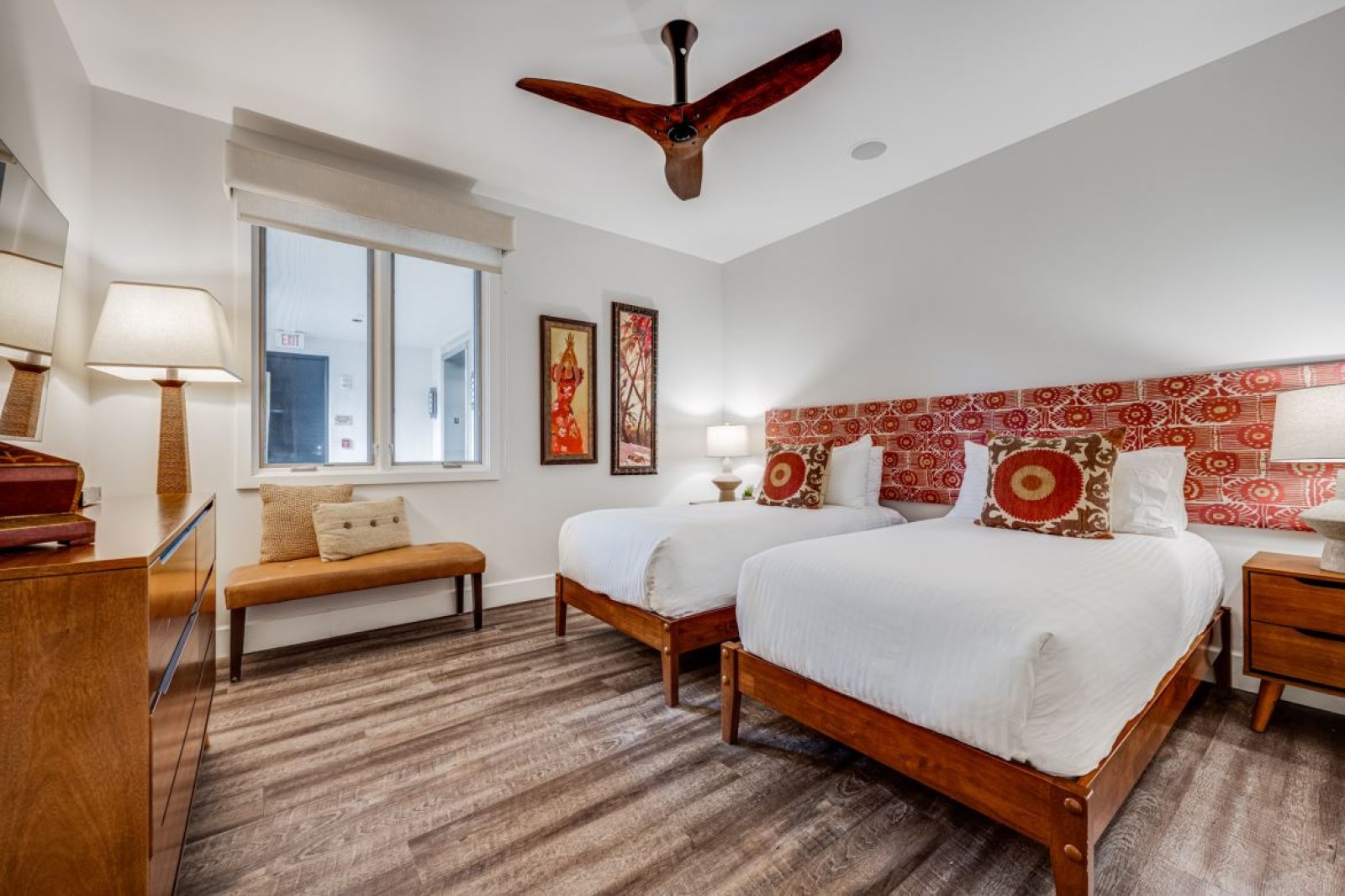 Bed: 2 Twin Beds w/Option as King Bed • Flat-Screen TV • Ceiling Fan • Private Bathroom