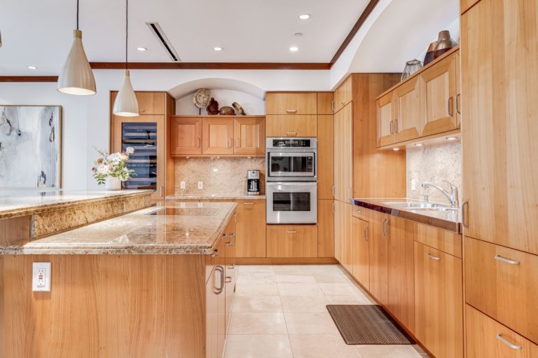 Fully equipped gourmet kitchen with granite countertops and premium appliances