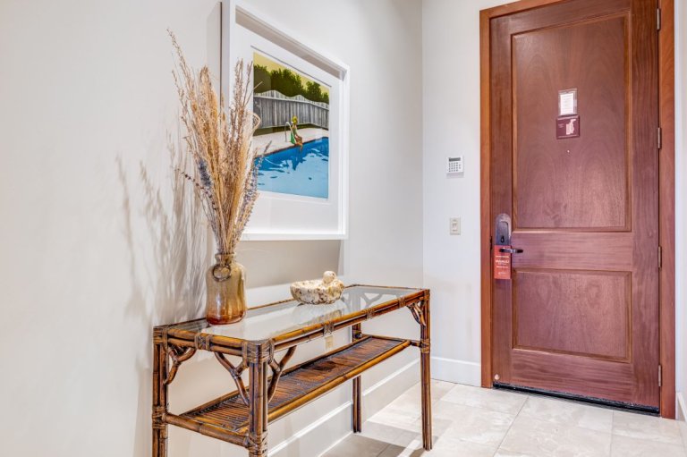 Accessible via a private elevator, the residence offers a quiet sense of arrival and an elevated living experience just steps from the shoreline.