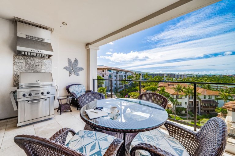 The private oceanview lanai is perfectly positioned to showcase panoramic views of the Pacific and Wailea Beach. Comfortably furnished and equipped with a Viking barbecue grill, this outdoor space is ideal for morning coffee, leisurely afternoons, or sunset dinners surrounded by ocean breezes and Maui’s changing skies.
