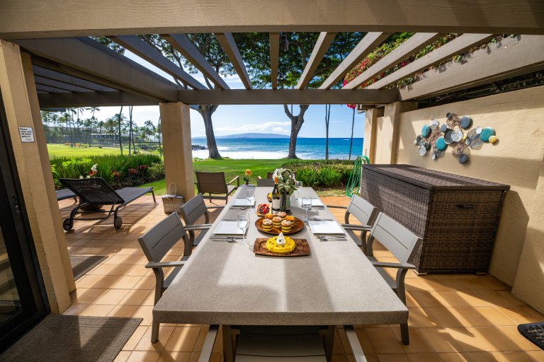 This is the one, the best location at Elua. Beachfront 3 BD+3 BA private townhouse with a courtyard and a private beach lanai. New dining room furniture, new glass doors, new bedroom furniture and soft goods highlight this ideal property. If it's available, this is the home-away-from-home that you want for your family.
