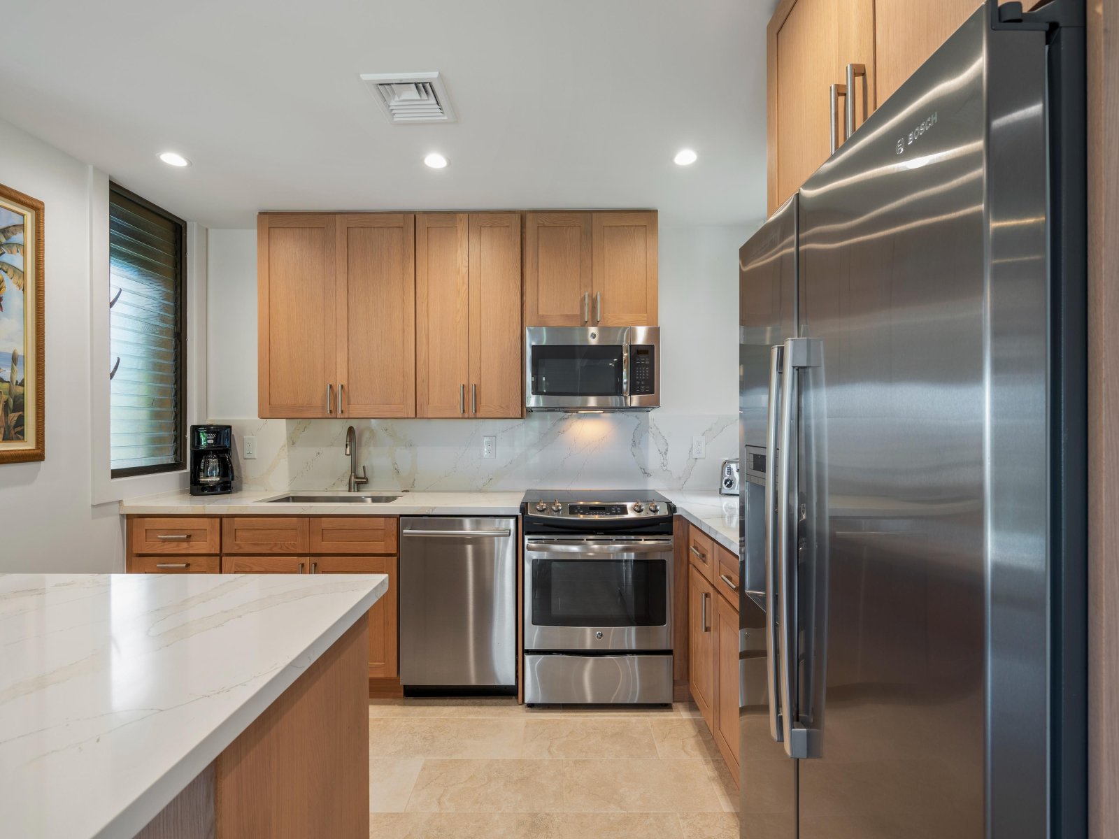 Fully Equipped Kitchen Dishwasher, Oven, Coffee Maker • Microwave • Refrigerator • Stove